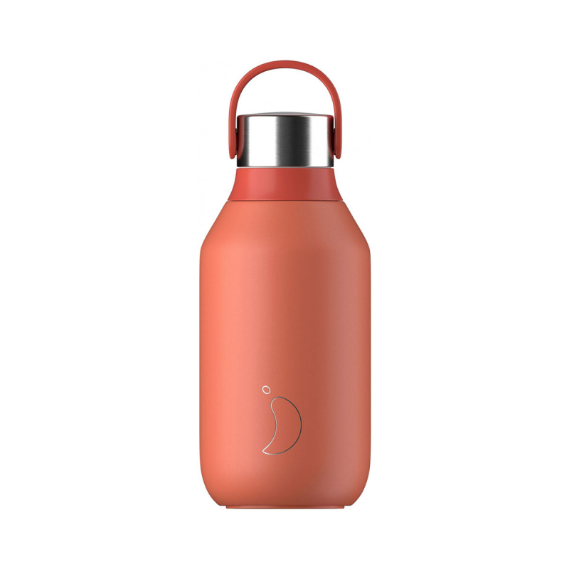 Θερμός υγρών χωρητικότητας 350ml, σε κόκκινο ματ χρώμα της εταιρείας Chilly's. Είναι κατασκευασμένο από ανθεκτικό ανοξείδωτο ατσάλι 304, απαλλαγμένο από BPA. Έχει διπλό τοίχωμα με κενό αέρος κι έτσι διατηρεί 12 ώρες τα ζεστά ροφήματα, 24 ώρες τα κρύα, ανεξαρτήτως καιρικών συνθηκών και δεν "ιδρώνει". Έχει ματ υφή και αντιολισθητική βάση που προστατεύει από τυχόν πτώσεις. Το πρωτοποριακό στόμιό του είναι αντιμικροβιακό προσφέροντας υγιεινή προστασία ενώ έχει λαβή για να το μεταφέρετε εύκολα παντού. Το βιδωτό καπάκι του κλείνει αεροστεγώς και αποτρέπει τυχόν διαρροές. Μην το τοποθετείτε στο ψυγείο, στον φούρνο μικροκυμάτων και στο πλυντήριο πιάτων. Δεν συνίσταται για πολύωρη αποθήκευση αλκοολούχων και ανθρακούχων ποτών, χυμών ή γαλακτοκομικών.