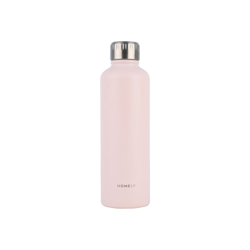 Θερμός μπουκάλι 500ml σε ροζ χρώμα από την εταιρείας Homely. Άριστη ποιότητα κατασκευής από ανοξείδωτο ατσάλι 18/8 εσωτερικά αλλά και εξωτερικά που ανταποκρίνεται σε υψηλές απαιτήσεις, εγγυάται μεγαλύτερη αντοχή στη μακροχρόνια χρήση και 100% αναλλοίωτη γεύση των υγρών. Το προϊόν είναι απαλλαγμένο από ουσίες BPA και είναι ασφαλές για επαφή με τρόφιμα και υγρά. Το διπλό τοίχωμα διατηρεί τα υγρά 24 ώρες κρύα και 12 ώρες ζεστά. Το χρώμα τοποθετείται μέσω της αποτελεσματικότερης τεχνικής powder coating, η οποία προσφέρει ένα ματ αποτέλεσμα και μεγάλη αντοχή στην μακροχρόνια χρήση.