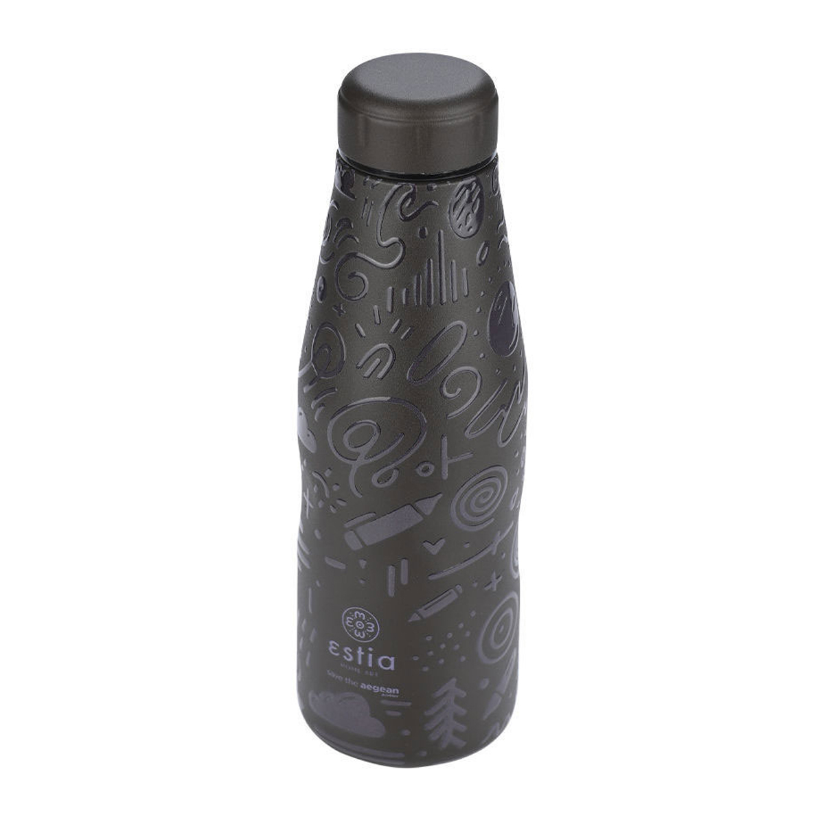 Μπουκάλι θερμός 500ml από την εταιρεία εstia σε μαύρο χρώμα με μοντέρνο σχέδιο. Είναι μέρος της συλλογής "Save The Aegean". Η εταιρεία εstia συνεισφέρει στον οργανισμό "Save The Aegean" με 1% επί των πωλήσεων, για καθαρότερες θάλασσες και ένα καλύτερο αύριο.Είναι κατασκευασμένο από ανοξείδωτο ατσάλι 18/8 που ανταποκρίνεται σε υψηλές απαιτήσεις, εγγυάται μεγαλύτερη αντοχή στη μακροχρόνια χρήση και 100% αναλλοίωτη γεύση των υγρών. Το προϊόν είναι απαλλαγμένο από ουσίες BPA και είναι ασφαλές για επαφή με τρόφιμα και υγρά. H ενισχυμένη μόνωση διπλού τοιχώματος διατηρεί κρύο έως 24 ώρες και ζεστό έως 12 ώρες το ρόφημα, με τη θερμοκρασία του εξωτερικού τοιχώματος να παραμένει σταθερή. Έχει άνετο κράτημα καθώς δεν «ιδρώνει». Το καπάκι είναι 100% στεγανό ώστε να αποφεύγονται οι διαρροές. Το χρώμα τοποθετείται μέσω της τεχνικής powder coating, η οποία προσφέρει ένα ματ αποτέλεσμα και μεγάλη αντοχή στην μακροχρόνια χρήση. Ιδανικό για την βόλτα, το ταξίδι, το γραφείο. Το λογότυπο είναι χαραγμένο πάνω στο προϊόν. Η συσκευασία του είναι κατασκευασμένη από 100% ανακυκλώσιμα υλικά και μπορεί να χρησιμοποιηθεί για πολλαπλές χρήσεις.