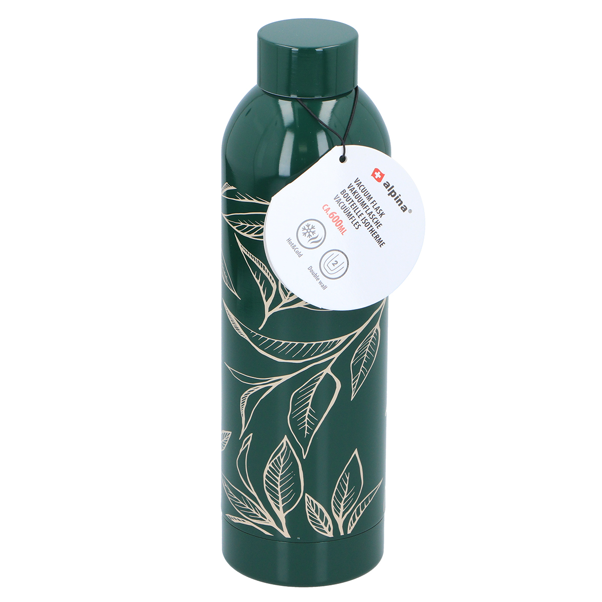 Θερμός σε πράσινο χρώμα και χωρητικότητα 600ml από την εταιρεία Alpina. Είναι κατασκευασμένο από ανοξείδωτο ατσάλι, ασφαλές για επαφή με τρόφιμα και υγρά. Το διπλό τοίχωμα διατηρεί τα υγρά 12 ώρες κρύα και 5-6 ώρες ζεστά. Ιδανικό για την βόλτα, το ταξίδι, το γραφείο καθώς χωράει στις ποτηροθήκες των περισσότερων αυτοκινήτων για να το μεταφέρετε εύκολα σε κάθε διαδρομή σας. Συνδυάστε το με τα υπόλοιπα είδη της ίδιας συλλογής για ένα ολοκληρωμένο αποτέλεσμα.