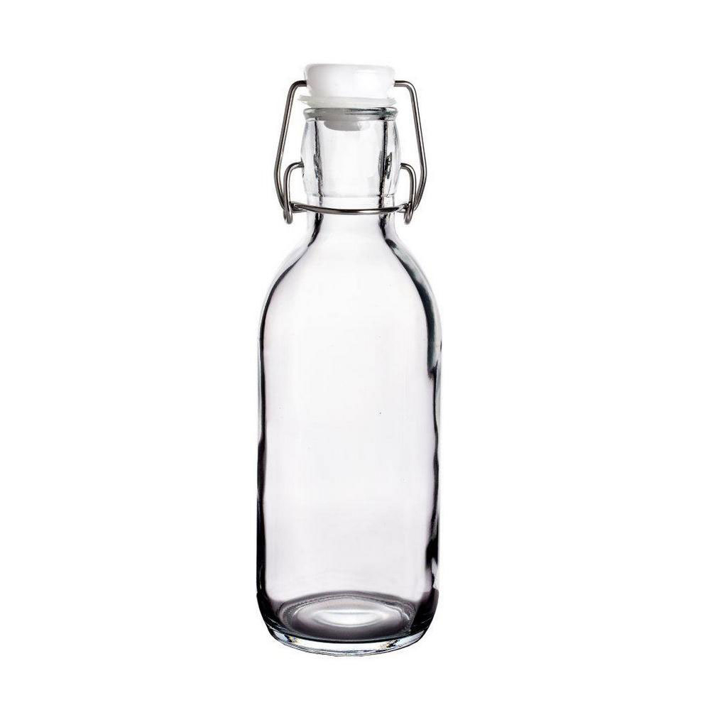 Μπουκάλι νερού από την εταιρεία Maxhome. Είναι κατασκευασμένο από διάφανο γυαλί. Διαθέτει ασφαλές κλείσιμο με μηχανισμό για να αποφεύγονται οι διαρροές. Ιδανικό για να τοποθετείτε νερό.