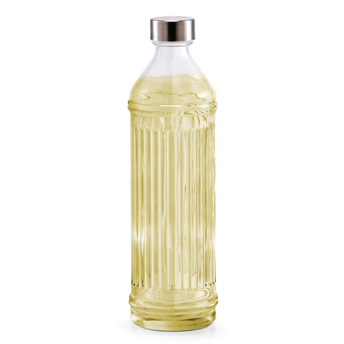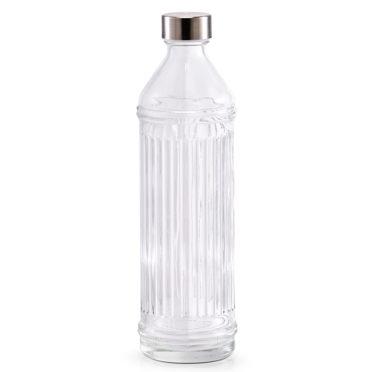 Μπουκάλι για το νερό κατασκευασμένο από διάφανο γυαλί με καπάκι από ανοξείδωτο ατσάλι. Κατάλληλο και για αλκοολούχα ποτά, αναψυκτικά, χυμό κα. Ιδανικό για καθημερινή χρήση στο σπίτι ή στο γραφείο. Χωρητικότητα: 970ml.