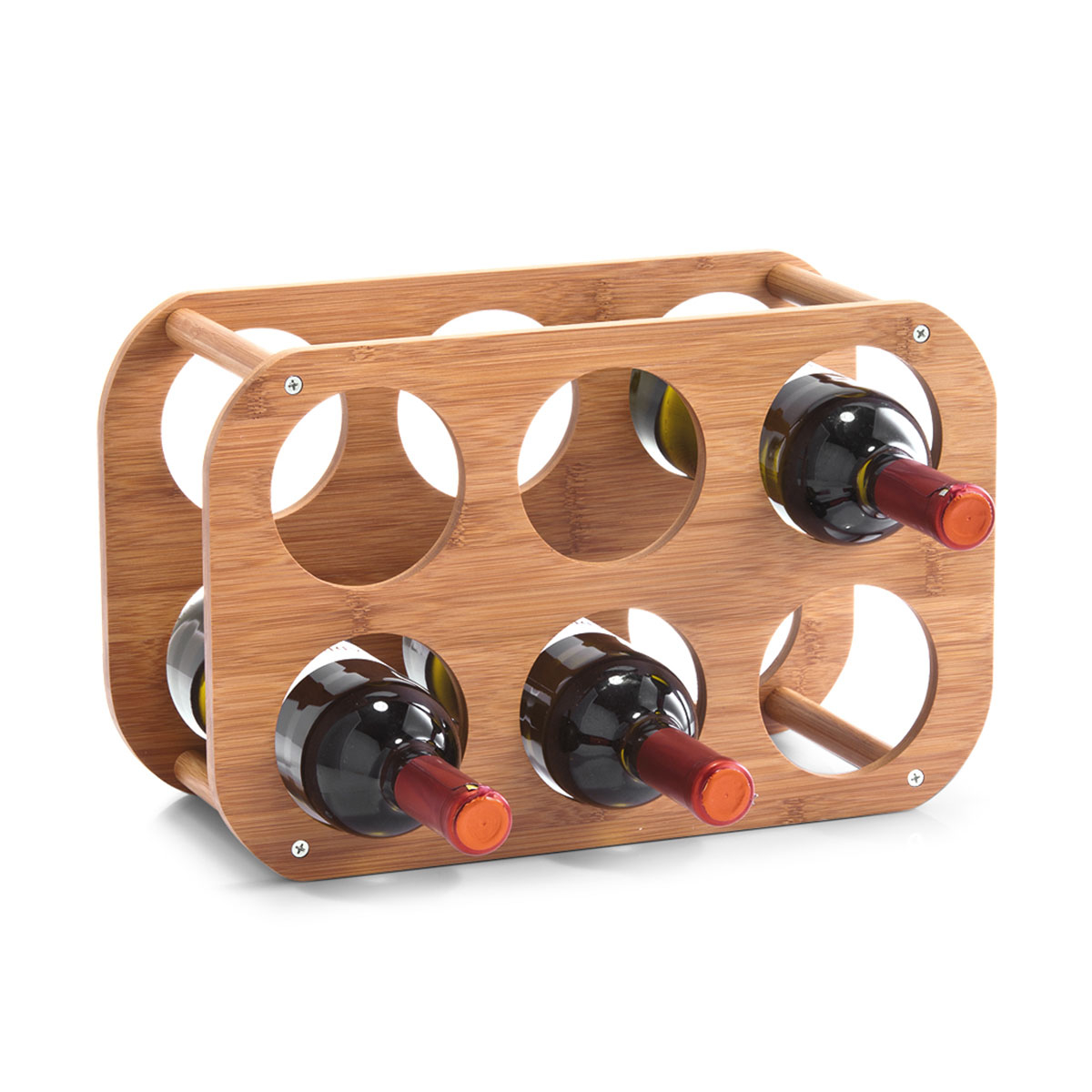 Μπουκαλοθήκη 6 θέσεων για να αποθηκεύσετε τα μπουκάλια των κρασιών ή των ποτών σας. Είναι κατασκευασμένη από ξύλο bamboo σε μπεζ απόχρωση. Είναι κατάλληλη για μπουκάλια μέγιστης διαμέτρου 8εκ. Ιδανική για να κρατήσετε οργανωμένη την κάβα σας στο σαλόνι, την τραπεζαρία ή την κουζίνα.