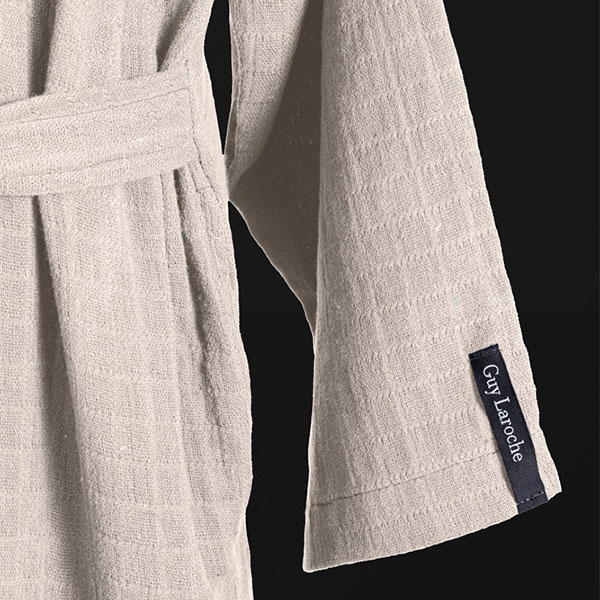 Μπουρνούζι ενηλίκων με γιακά σε γκρι χρώμα και διακριτικό σχέδιο από την εταιρεία Guy Laroche. Κατασκευασμένο από 100% οργανικό βαμβάκι που το καθιστά μαλακό και ανθεκτικό. Ιδανικό για χρήση μετά το μπάνιο. Έρχεται σε συσκευασία πουγκί.