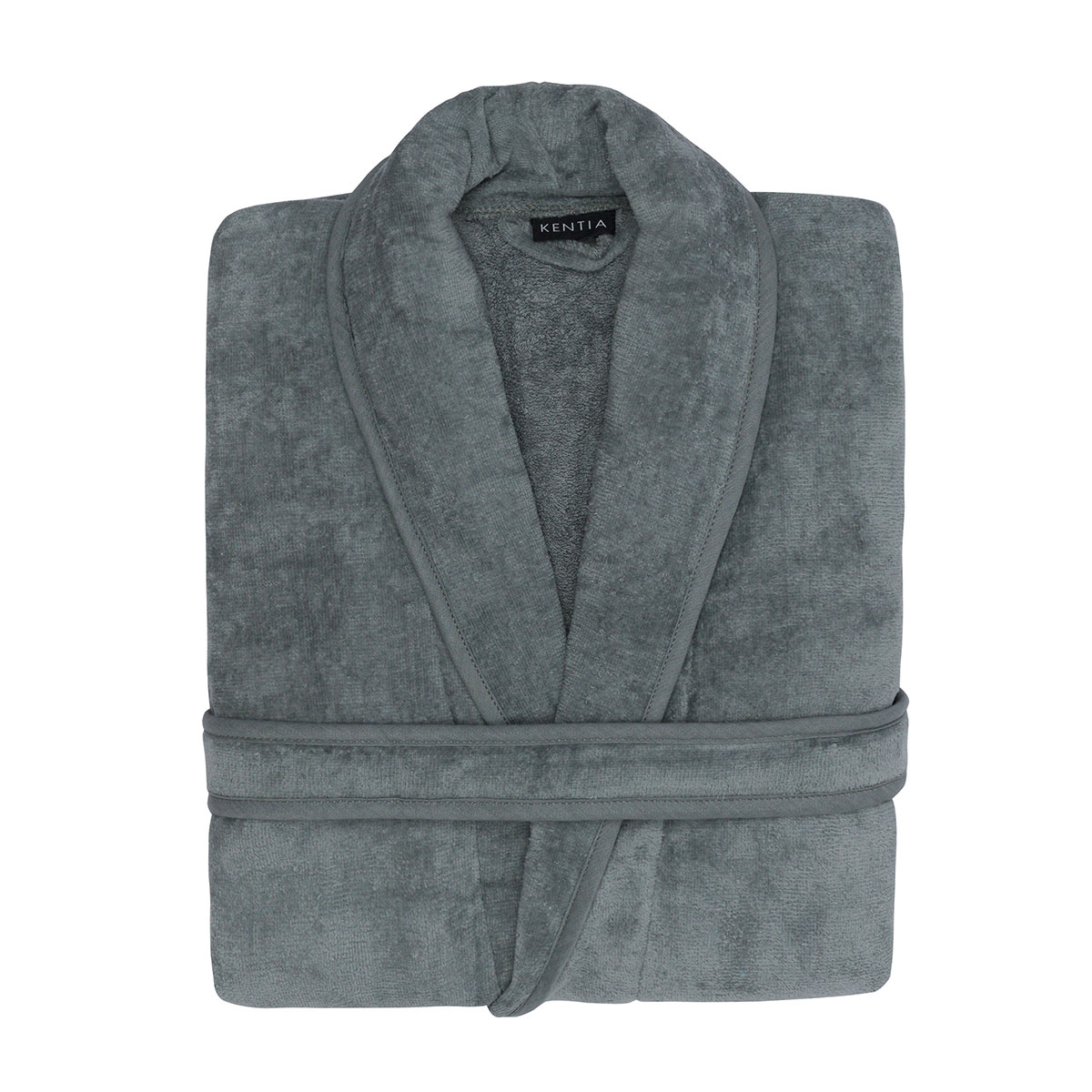 Μπουρνούζι για το μπάνιο σας σε γκρι χρώμα από την εταιρεία Kentia. Έχει βελουτέ υφή και σύνθεση από 100% βαμβάκι βάρους 380gsm που το καθιστά πολύ απορροφητικό. Διαθέτει γιακά, ζώνη και 2 τσέπες. Ιδανικό για το καθημερινό σας μπάνιο