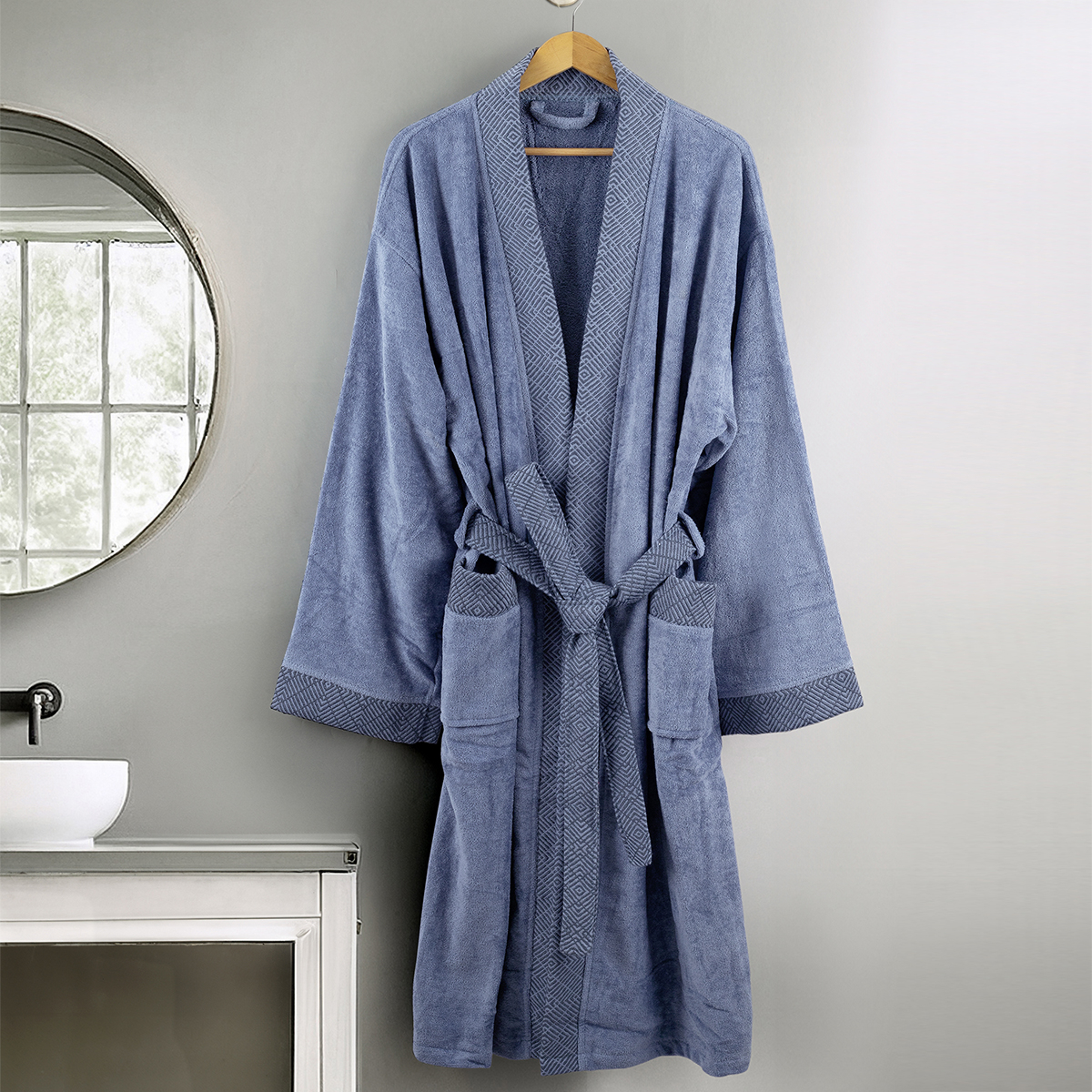 Μπουρνούζι ενηλίκων μπάνιου με κουκούλα σε μπλε χρώμα και μοντέρνο σχέδιο από την εταιρεία Nima. Η σύνθεσή του είναι από 100% βαμβάκι 380gsm, που το καθιστά απαλό και απορροφητικό. Ιδανικό μπουρνούζι για το μπάνιο ή το κολυμβητήριο.