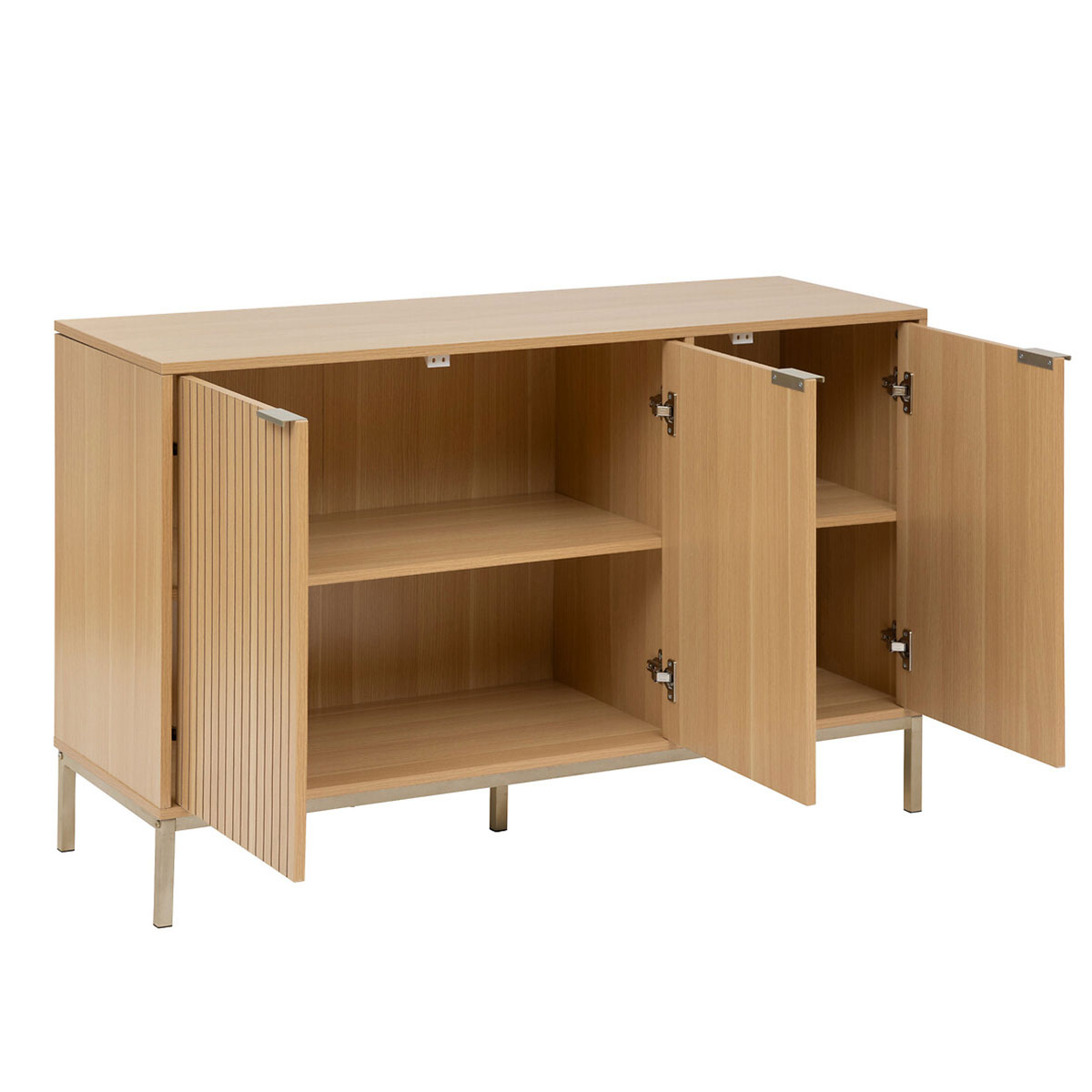 Μπουφές με μίνιμαλ σχεδιασμό σε φυσικό χρώμα ξύλου. Διαθέτει άφθονο αποθηκευτικό χώρο για τα σερβίτσια ή για ότι άλλο επιθυμείτε. Ιδανικός για την είσοδο του σπιτιού, το σαλόνι ή όπου αλλού επιθυμείτε. Συνδυάστε τον με τα υπόλοιπα είδη της ίδιας συλλογής για ένα ολοκληρωμένο αποτέλεσμα στο χώρο σας.Το προϊόν έρχεται αμοντάριστο και συναρμολογείται βάσει οδηγιών.
