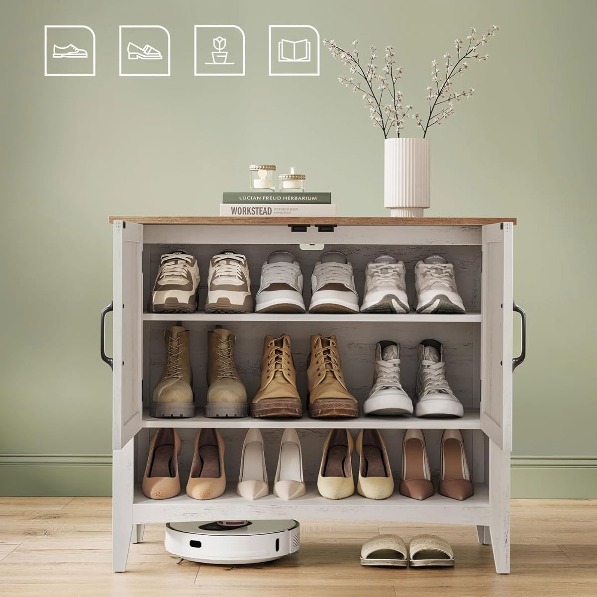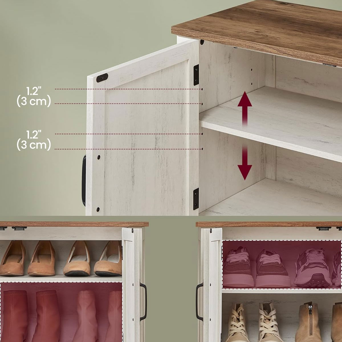Ντουλάπι παπουτσιών σε λευκό ρουστίκ χρώμα, ιδανικό για το σαλόνι ή για όποιον άλλο χώρο του σπιτιού σας επιθυμείτε από την εταιρεία Vasagle. Μπορεί να χρησιμοποιηθεί και ως μπουφές ή έπιπλο εισόδου. Το προϊόν έρχεται αμοντάριστο και συναρμολογείται βάσει οδηγιών.