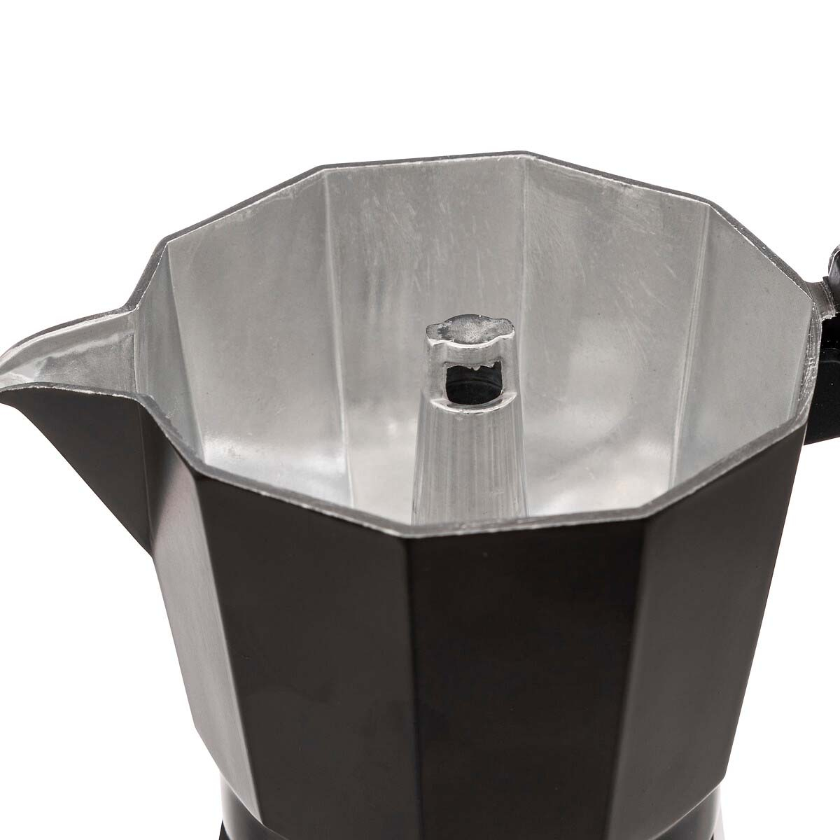 Μπρίκι για εσπρέσο κατασκευασμένο από αλουμίνιο σε μαύρο χρώμα. Διαθέτει ξύλινη εργονομική λαβή σε μπεζ χρώμα. Ιδανικό για να φτιάξετε εσπρέσο γρήγορα και εύκολα. Γεμίστε με νερό το κάτω μέρος και βάλτε καφέ μέσα στο φίλτρο. Στη συνέχεια κλείστε την καφετιέρα και τοποθετήστε τη σε μια εστία θέρμανσης. Μέσα σε ελάχιστα λεπτά ο καφές είναι έτοιμος στο πάνω μέρος της καφετιέρας.