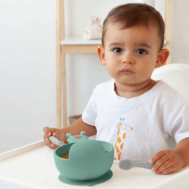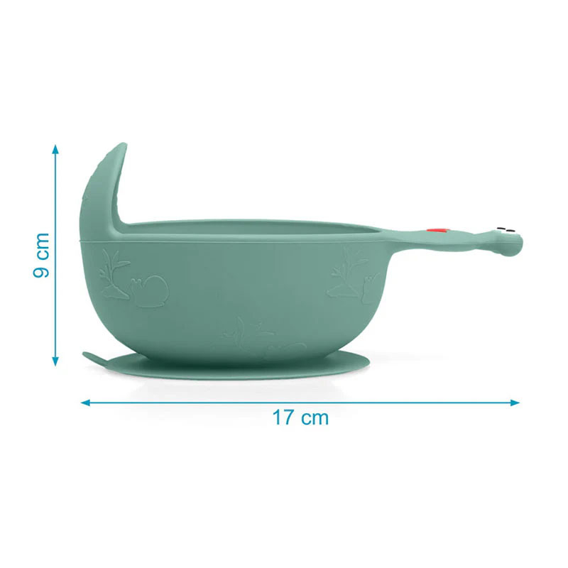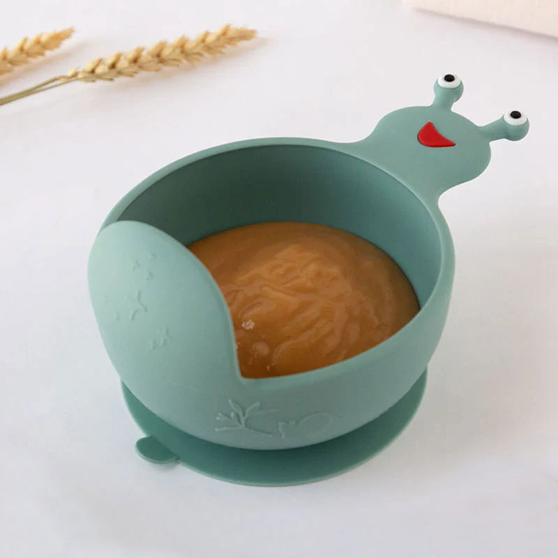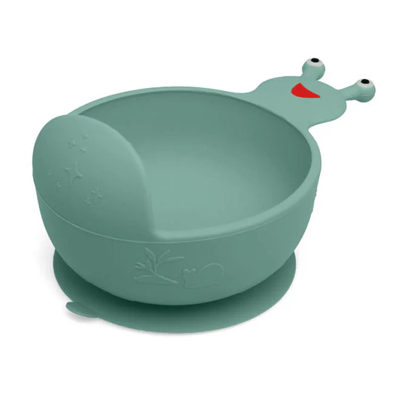 Μπωλ σιλικόνης με βεντούζα από την εταιρεία Kiokids σε πράσινο χρώμα με σχέδιο σαλιγκάρι. Είναι κατασκευασμένο από 100% σιλικόνη μη τοξική, υποαλλεργική. Στη βάση διαθέτει βεντούζα για να σταθεροποιείται όταν το παιδί σας τρώει, αποφεύγοντας διαρροές και ατυχήματα. Επιπλέον, οι μαλακές άκρες του είναι σχεδιασμένες για τα χέρια των μωρών, διασφαλίζοντας ότι μπορούν να φτάσουν το φαγητό τους με ασφάλεια. Ιδανικό μπωλ για να διευκολύνει την αυτονομία του μωρού διατηρώντας την τάξη και την καθαριότητα.