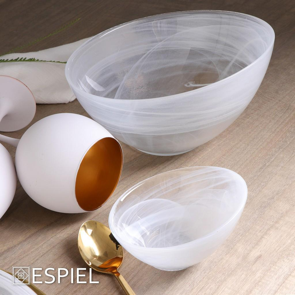Μπωλ σε λευκό χρώμα, λευκές λεπτομέρειες και μοντέρνο σχέδιο από την εταιρεία Espiel. Είναι κατασκευασμένο από γυαλί και μπορεί να τοποθετηθεί στον φούρνο μικροκυμάτων και στο πλυντήριο πιάτων. Το σχέδιο που έχει στην μάζα του, δίνει την αίσθηση του ορυκτού αλάβαστρου, ενώ μένει άθικτο εφόρου ζωής. Συνδυάστε το με τα υπόλοιπα είδη της ίδιας σειράς για ένα ολοκληρωμένο σετ.
