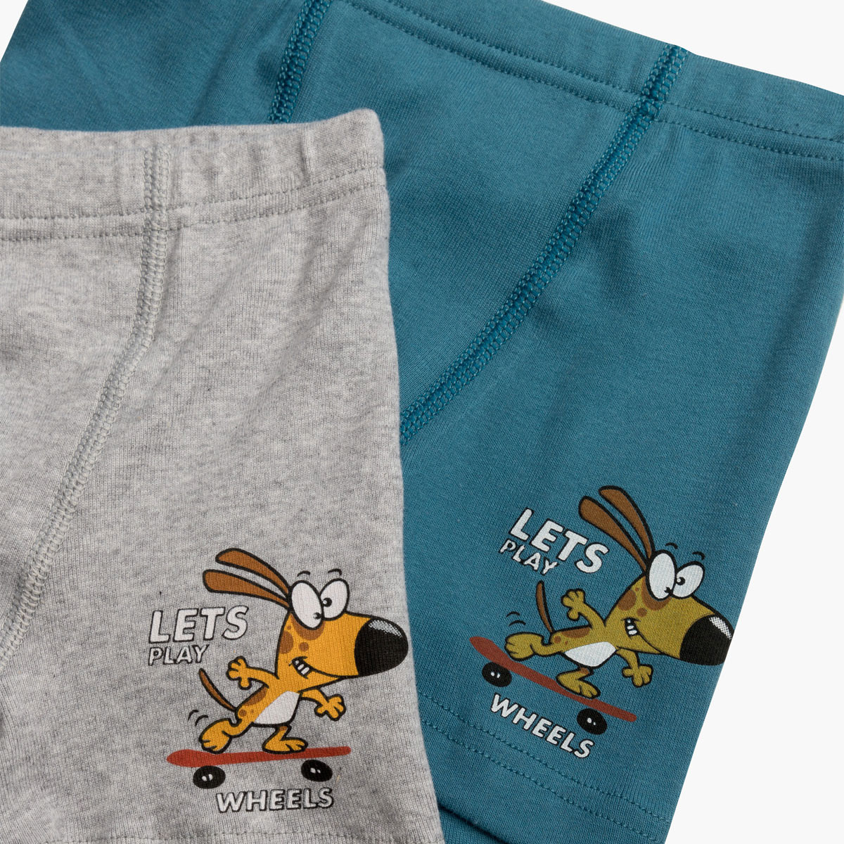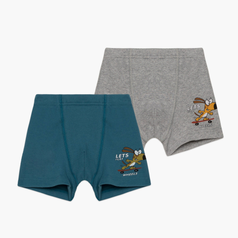 Παιδικά boxer σετ 2 τμχ από τη συλλογή Minervakia της εταιρείας Minerva. Πρόκειται για μποξεράκια σε γκρι και πετρόλ χρώμα με μοντέρνα σχέδια. Είναι κατασκευασμένα από 100% βαμβακερό ύφασμα, που προσδίδει ιδιαίτερη απαλότητα, αντοχή και σωστή εφαρμογή. Δεν διαθέτουν εσωτερικές πλαϊνές ραφές προς αποφυγή ερεθισμών του δέρματος. Είναι ιδιαίτερα ανθεκτικά και διατηρούν τη φόρμα τους. Τα χρώματα και τα σχέδια έχουν δημιουργηθεί με την μέθοδο της νηματοβαφής (μέσα στην ύφανση), με αποτέλεσμα να παραμένουν αναλλοίωτα στην χρήση και τις πλύσεις. Τα παιδικά και εφηβικά εσώρουχα της Minerva διαθέτουν τα διεθνή πιστοποιητικά ποιότητας και ασφάλειας ISO 9001:2000 , ISO 9002, Oeko-Tex Standard 100, Eco Textile Label. Σε όλα τα στάδια παραγωγής έχουν χρησιμοποιηθεί υποαλλεργικά υλικά χωρίς επιβλαβείς ουσίες προς την υγεία. Αποτελούν προϊόντα ελληνικής ραφής με την εγγύηση ποιότητας και αξιοπιστίας της εταιρείας Minerva. Μεγεθολόγιο ανάλογα με ηλικία και ύψος παιδιού: No2 (2 ετών, 90cm), No4 (3-4 ετών, 104cm), No6 (5-6 ετών, 116cm), No8 (7-8 ετών, 128cm), No10 (9-10 ετών, 140cm), No12 (11-12 ετών, 152cm), No14 (13-14 ετών, 164cm-αγόρι, 158cm-κορίτσι), No16 (15-16 ετών, 176cm-αγόρι, 164cm-κορίτσι).