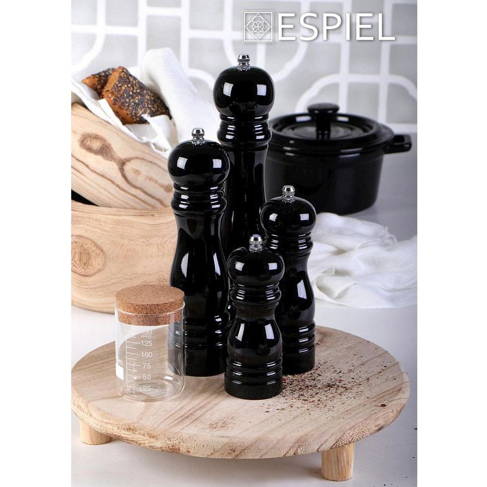 Μύλος για αλατοπίπερο που αλέθει τα μπαχαρικά σας για να είναι πάντα φρεσκοτριμμένα της εταιρείας Espiel. Είναι κατασκευασμένος από ξύλο σε μαύρο χρώμα, κατάλληλο για επαφή με τρόφιμα και διαθέτει μύλο από κεραμικό υλικό. Ιδανικό σκεύος για να δώσετε ακόμα περισσότερη γεύση στο φαγητό σας, αλλά πάντα με στυλ.