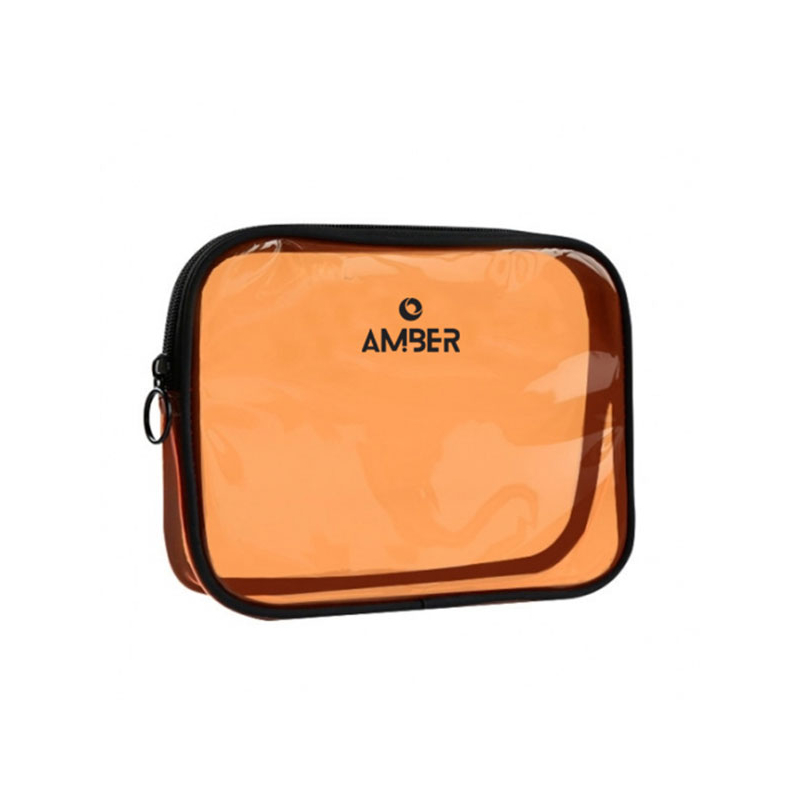 Νεσεσέρ από την εταιρεία Amber. Είναι κατασκευασμένο από διάφανο πορτοκαλί PVC υλικό. Αποτελείται από έναν ενιαίο χώρο και κλείνει με φερμουάρ. Η διαφανής όψη του σας προσφέρει εύκολη ορατότητα του περιεχομένου. Επίσης, καθαρίζεται εύκολα. Είναι ιδανικό για να οργανώσετε τα πράγματά σας στην τσάντα παραλίας, στην βαλίτσα, στο ντουλάπι, κλπ. Συνδυάστε το με τα υπόλοιπα νεσεσέρ της σειράς για ένα κομψό και αρμονικά οργανωμένο σετ. Χωρητικότητα 2.1 λίτρα.