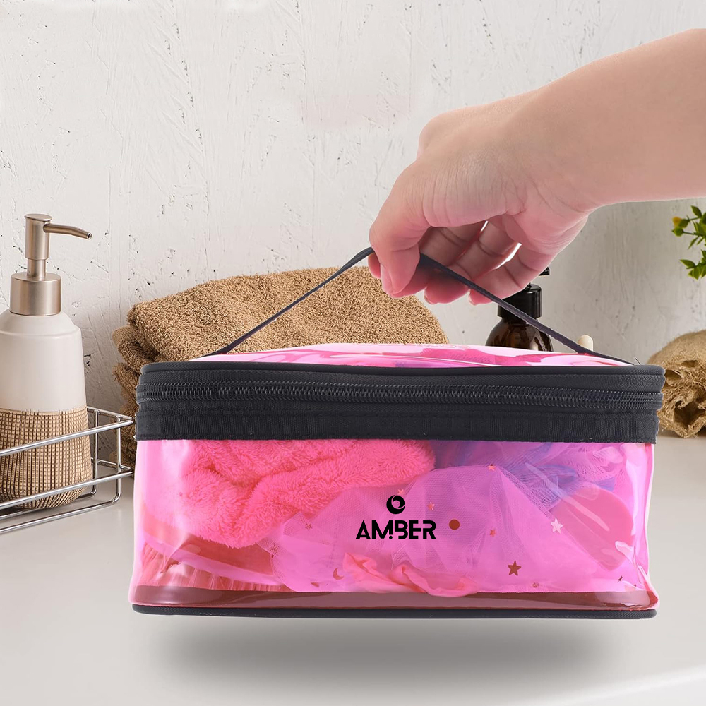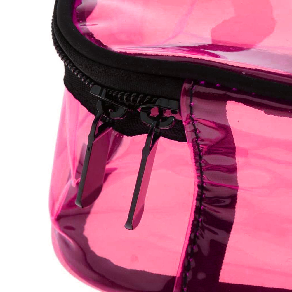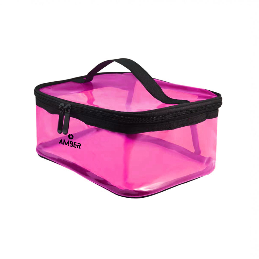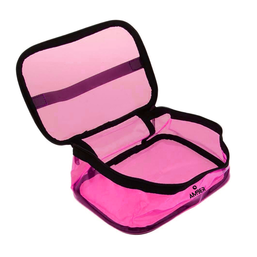Νεσεσέρ από την εταιρεία Amber. Είναι κατασκευασμένο από διάφανο φούξια PVC υλικό. Αποτελείται από έναν μεγάλο ενιαίο χώρο και κλείνει με φερμουάρ. Η διαφανής όψη του σας προσφέρει εύκολη ορατότητα του περιεχομένου. Επίσης, καθαρίζεται εύκολα. Είναι ιδανικό για να οργανώσετε τα πράγματά σας στην τσάντα παραλίας, στην βαλίτσα, στο ντουλάπι, κλπ. Συνδυάστε το με τα υπόλοιπα νεσεσέρ της σειράς για ένα κομψό και αρμονικά οργανωμένο σετ. Χωρητικότητα 4.3 λίτρα.