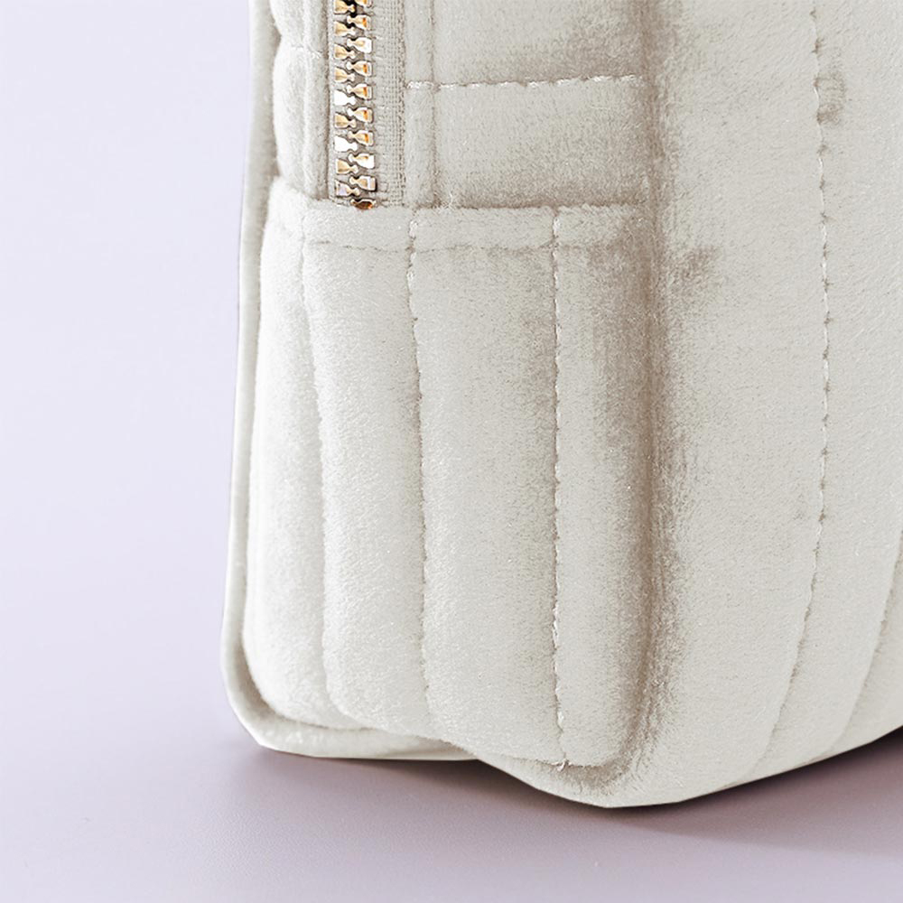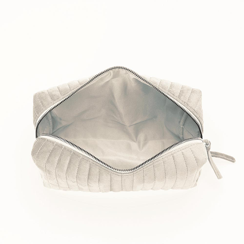 Νεσεσέρ από την εταιρεία Amber σε λευκό χρώμα με ανάγλυφη επιφάνεια. Είναι κατασκευασμένο από πολυεστερικό βελουτέ υλικό. Αποτελείται από έναν ενιαίο χώρο και κλείνει με φερμουάρ. Είναι ιδανικό για να οργανώσετε τα πράγματά σας στην τσάντα παραλίας, στην βαλίτσα, στο ντουλάπι, κλπ. Χωρητικότητα 5 λίτρα.