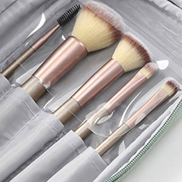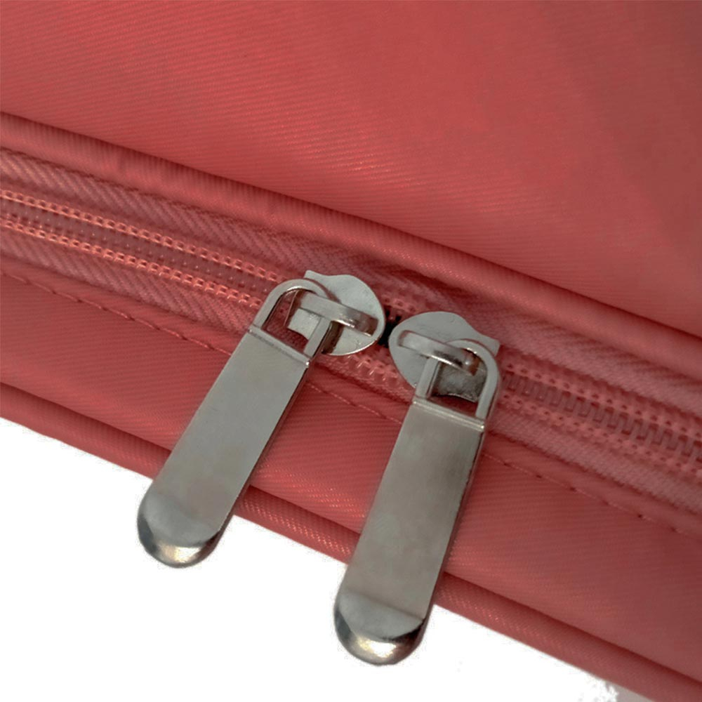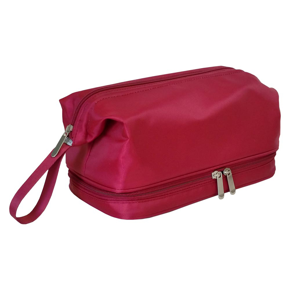 Νεσεσέρ από την εταιρεία Amber σε μπορντώ χρώμα. Είναι κατασκευασμένο από polyester. Το ύφασμα του είναι αδιάβροχο. Αποτελείται από έναν ενιαίο ευρύχωρο χώρο που κλείνει με φερμουάρ. Έχει 3 εσωτερικά τσεπάκια για να οργανώσετε καλύτερα τα αντικείμενα. Η μπανέλα που έχει στο εσωτερικό βοηθά στο να παραμένει διάπλατα ανοιχτό. Επίσης, έχει υποδοχές για πινέλα στο κάτω μέρος, με προστασία για λερώματα. Διαθέτει λαβή μεταφοράς στο πλαϊνό μέρος. Είναι ιδανικό για να οργανώσετε τα πράγματά σας στην τσάντα παραλίας, στην βαλίτσα, στο ντουλάπι, κλπ. Χωρητικότητα 6.6 λίτρα.