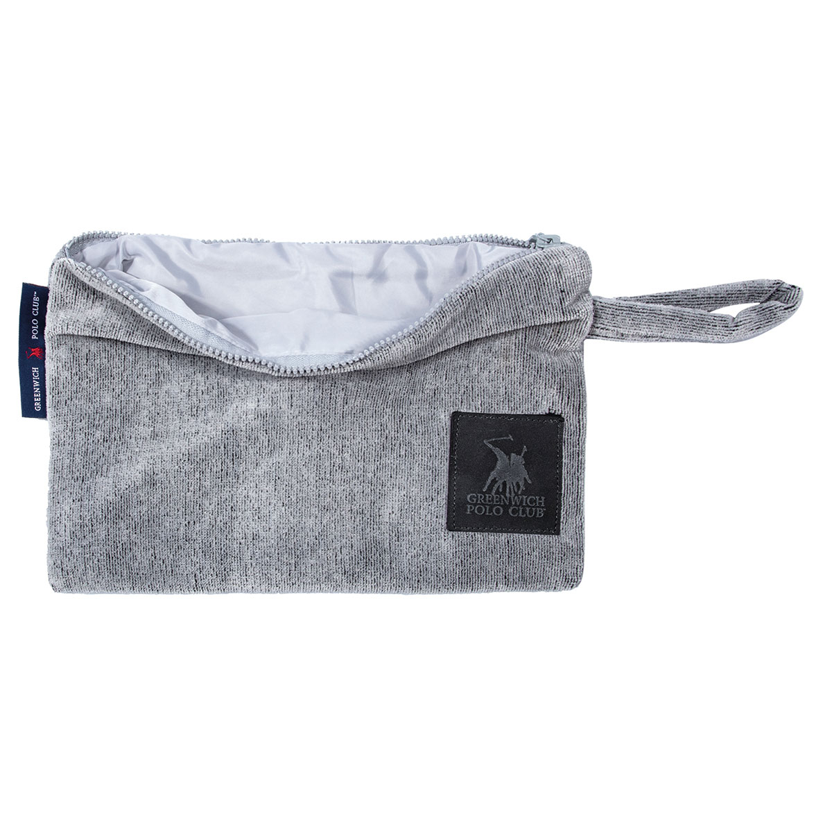 Τσαντάκι θαλάσσης από τον οίκο Greenwich Polo Club που προσφέρει ποιότητα, στυλ και πολυτέλεια. Έχει σκούρο γκρι χρώμα και θηλιά στην άκρη για εύκολο και πρακτικό κράτημα. Είναι κατασκευασμένο από 100% υποαλλεργικό βαμβάκι σε ύφανση jacquard και βάρος 400 gsm. Ιδανικό για να τοποθετείτε μέσα τα απαραίτητα.