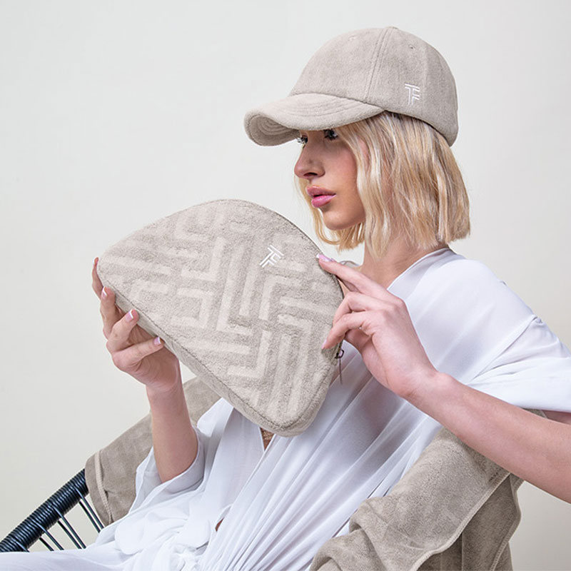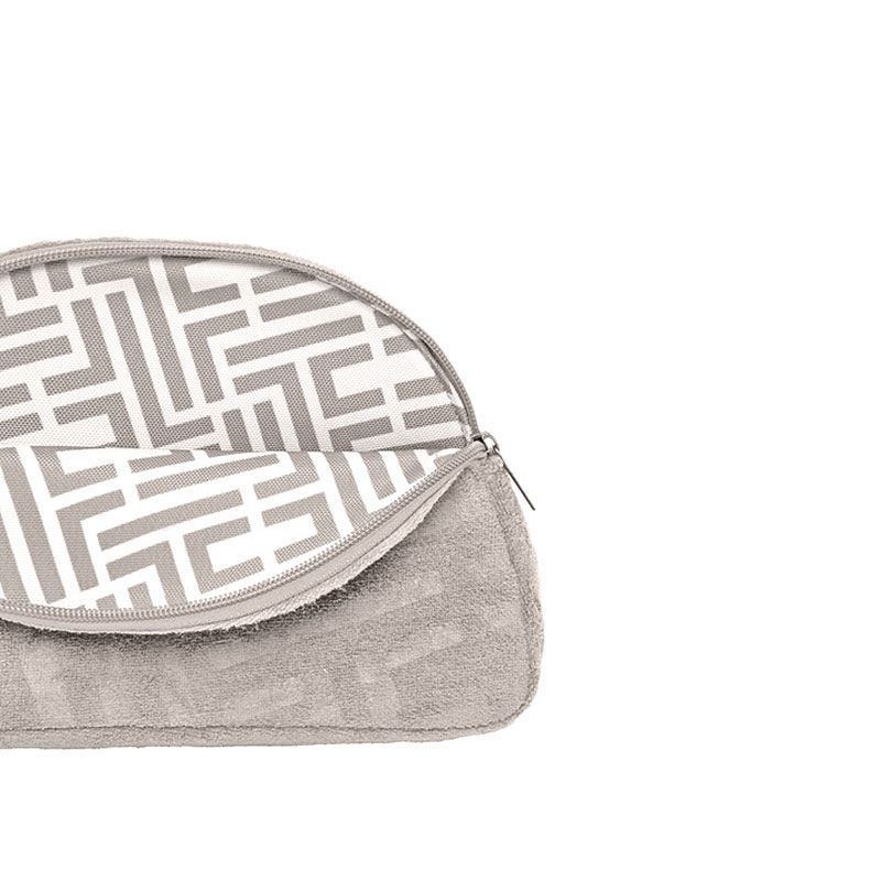 Τσαντάκι θαλάσσης από την εταιρεία Feel & Touch σε εκρού-μπεζ χρώμα με λευκές λεπτομέρειες. Είναι κατασκευασμένο από πετσετέ ύφασμα με βελουτέ υφή και σύνθεση από 88% Polyester-12% πολυαμίδιο που το καθιστά μαλακή και ανθεκτική. Η εσωτερική επένδυση είναι από αδιάβροχο ύφασμα που προσφέρει επιπλέον προστασία από την υγρασία. Διαθέτει ενιαίο χώρο αποθήκευσης που κλείνει με φερμουάρ, προστατεύοντας τα προσωπικά σας αντικείμενα. Συνδυάστε το με τα υπόλοιπα είδη της ίδιας σειράς για ένα ολοκληρωμένο σετ.