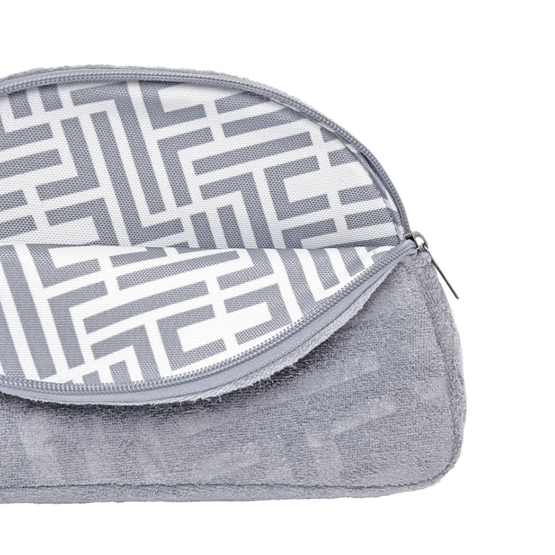 Τσαντάκι θαλάσσης από την εταιρεία Feel & Touch σε γκρι χρώμα με λευκές λεπτομέρειες. Είναι κατασκευασμένο από πετσετέ ύφασμα με βελουτέ υφή και σύνθεση από 88% Polyester-12% πολυαμίδιο που το καθιστά μαλακή και ανθεκτική. Η εσωτερική επένδυση είναι από αδιάβροχο ύφασμα που προσφέρει επιπλέον προστασία από την υγρασία. Διαθέτει ενιαίο χώρο αποθήκευσης που κλείνει με φερμουάρ, προστατεύοντας τα προσωπικά σας αντικείμενα. Συνδυάστε το με τα υπόλοιπα είδη της ίδιας σειράς για ένα ολοκληρωμένο σετ.