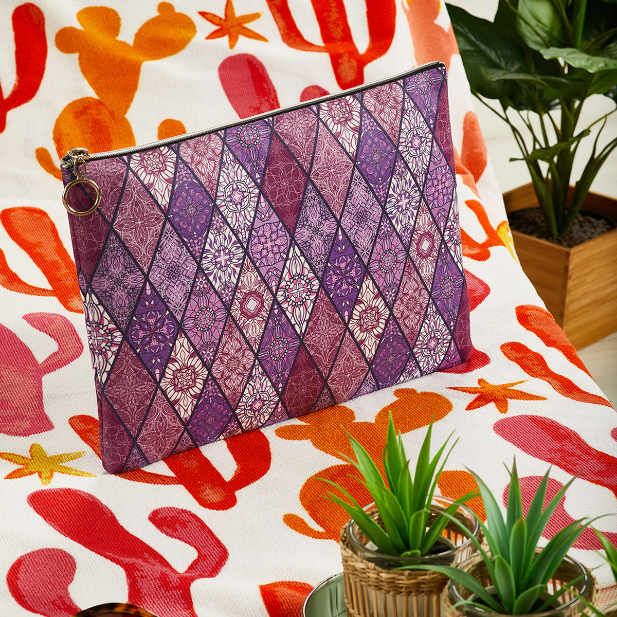 Τσαντάκι θαλάσσης σε μωβ αποχρώσεις , με εκρού-λιλά λεπτομέρειες και έθνικ σχέδιο από την εταιρεία Whitegg. Είναι κατασκευασμένο από 100% polyester. Κλείνει με φερμουάρ για να το έχετε μαζί σας παντού. Ιδανικό νεσεσέρ για να μεταφέρετε μικροαντικείμενα εύκολα και χωρίς ογκώδεις τσάντες.