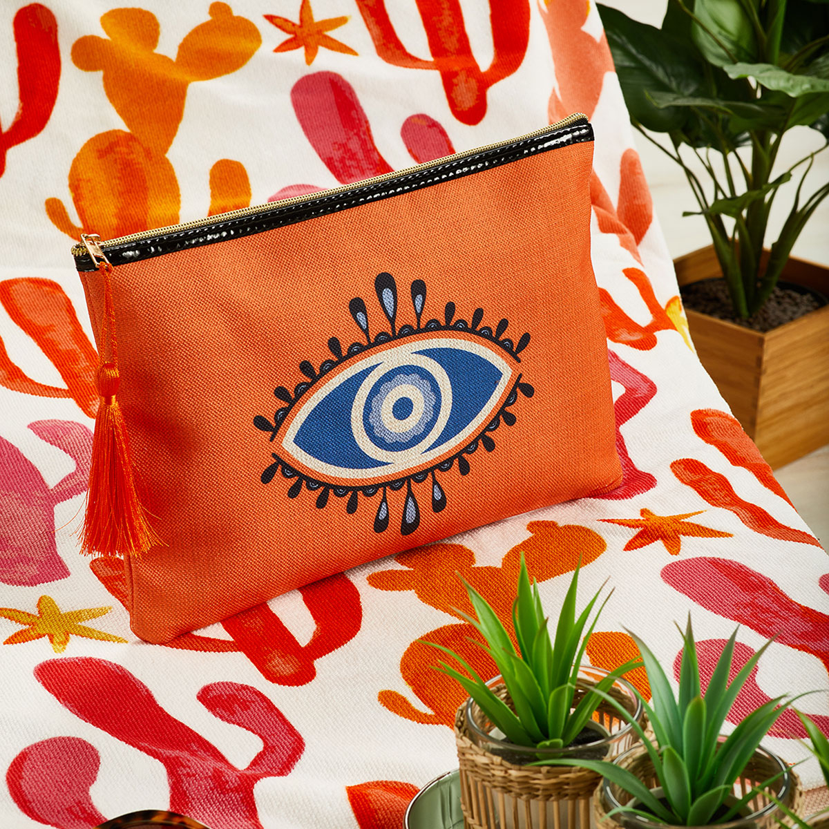 Τσαντάκι θαλάσσης σε πορτοκαλί χρώμα, με λευκές-μπλε λεπτομέρειες και μοντέρνο σχέδιο από την εταιρεία Whitegg. Είναι κατασκευασμένο από 100% polyester. Κλείνει με φερμουάρ για να το έχετε μαζί σας παντού. Ιδανικό νεσεσέρ για να μεταφέρετε μικροαντικείμενα εύκολα και χωρίς ογκώδεις τσάντες.