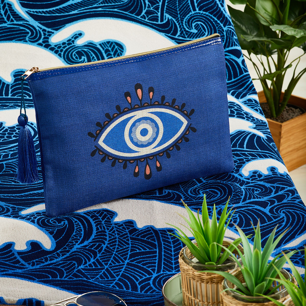 Τσαντάκι θαλάσσης σε μπλε χρώμα, με εκρού-γαλάζιες λεπτομέρειες και μοντέρνο σχέδιο από την εταιρεία Whitegg. Είναι κατασκευασμένο από 100% polyester. Κλείνει με φερμουάρ για να το έχετε μαζί σας παντού. Ιδανικό νεσεσέρ για να μεταφέρετε μικροαντικείμενα εύκολα και χωρίς ογκώδεις τσάντες.