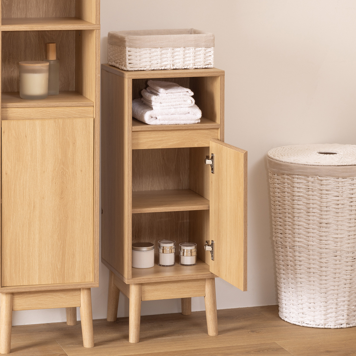 Επιδαπέδιο ντουλάπι με ράφι και μοντέρνο σχεδιασμό σε μπεζ χρώμα. Το ντουλάπι εσωτερικά έχει ρυθμιζόμενο ράφι που χωρίζει το χώρο σε 2 μέρη. Το πορτάκι έχει κενό που δημιουργεί λαβή για να το ανοίγετε. Ιδανικό για να αποθηκεύετε τα μικροπράγματα σας. Συνδυάστε το με τα υπόλοιπα προϊόντα στο ίδιο σετ για ένα ολοκληρωμένο αποτέλεσμα. Το προϊόν έρχεται αμοντάριστο και περιλαμβάνονται οι οδηγίες.