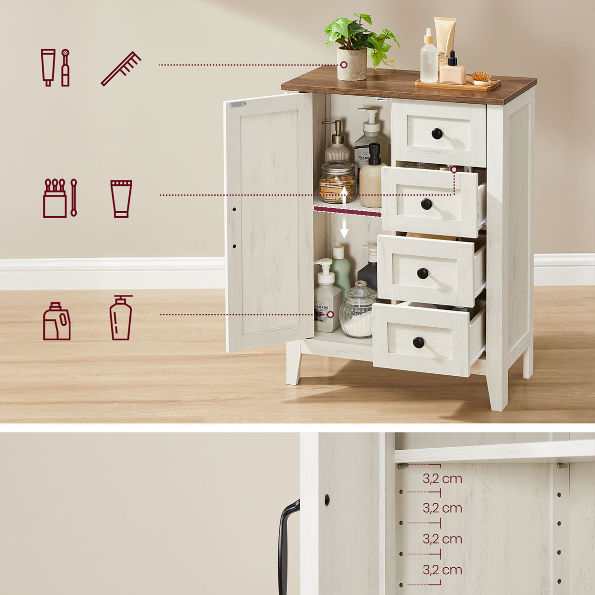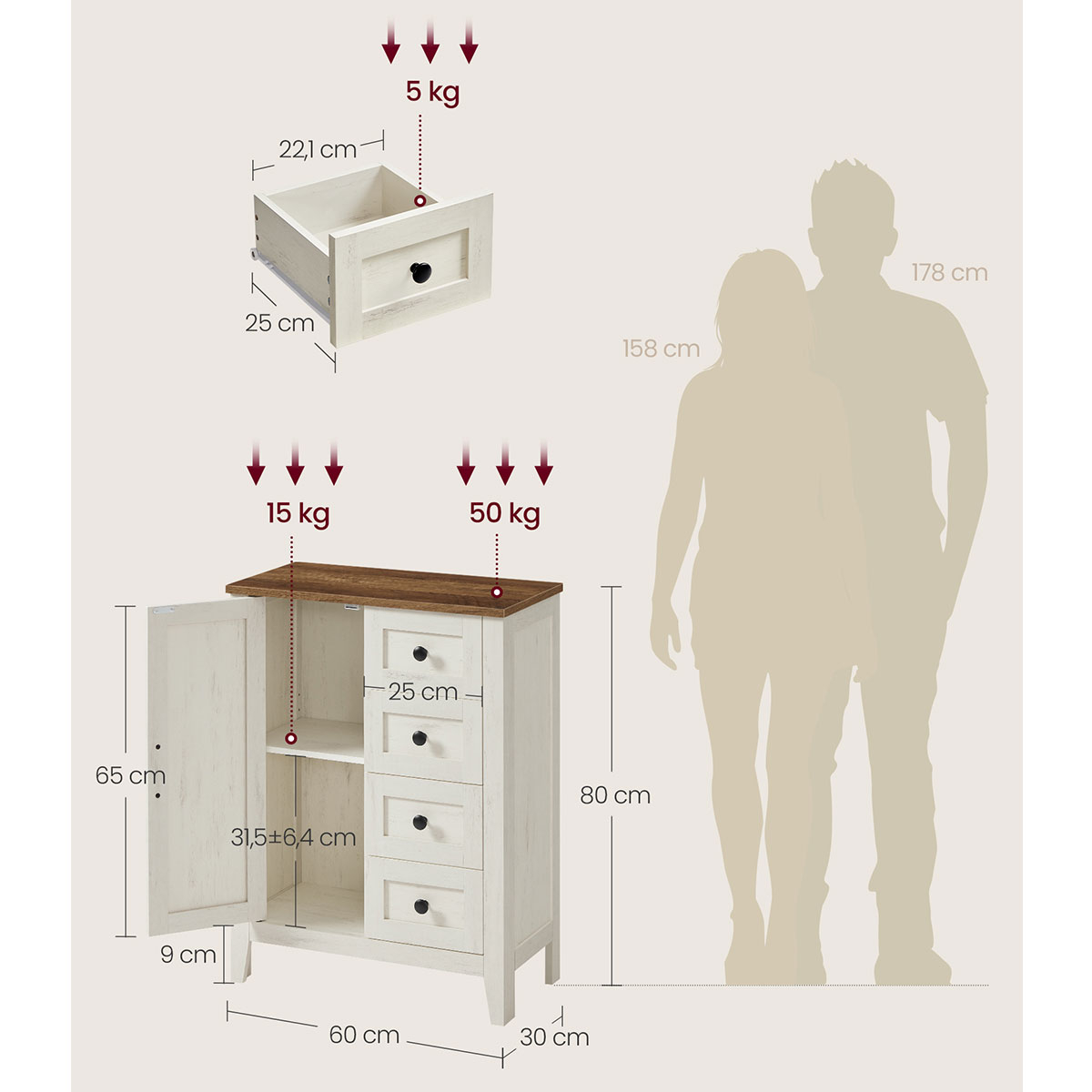 | VasagleΝτουλάπι Δαπέδου Με 4 Συρτάρια (60x30x80) Vasagle BBK753W01