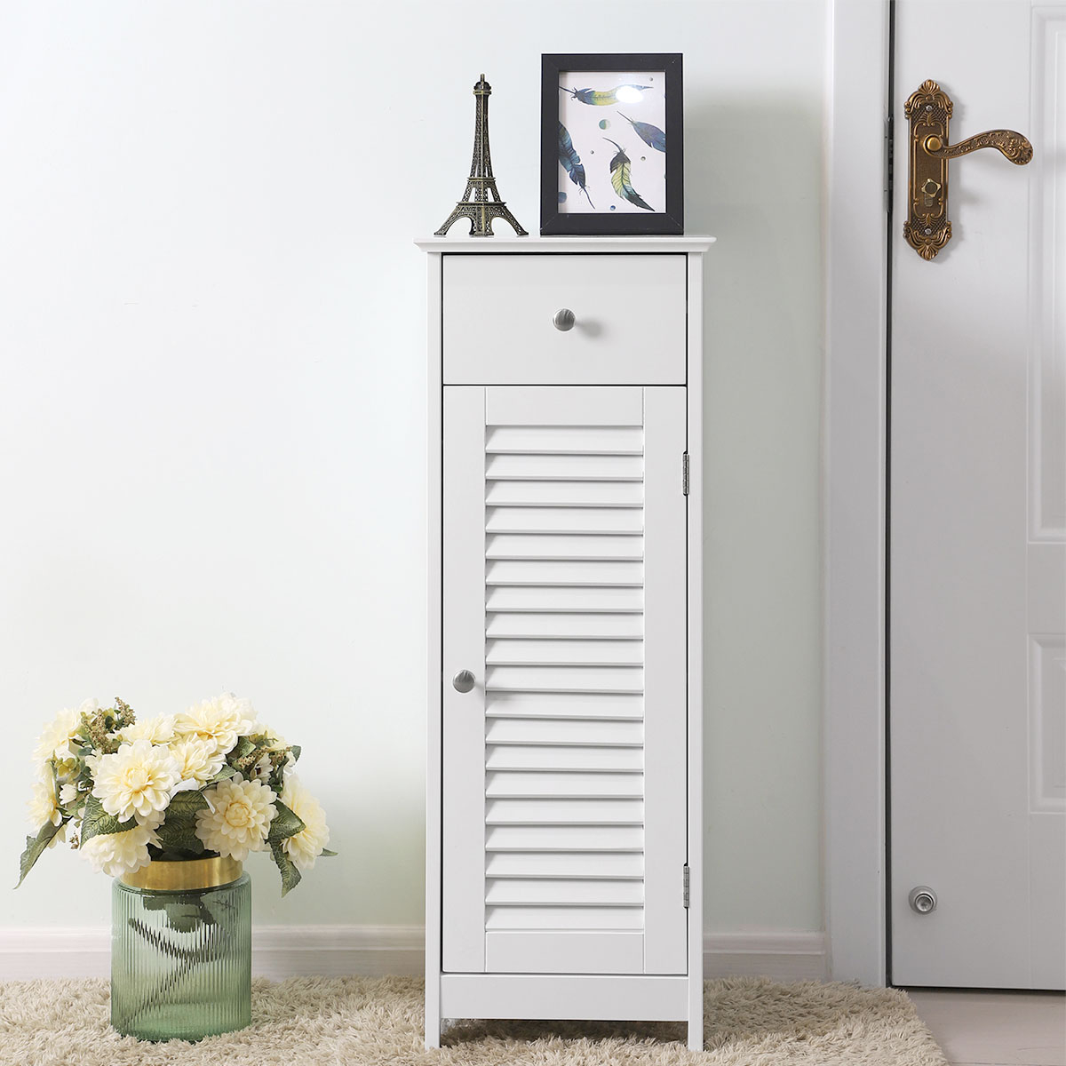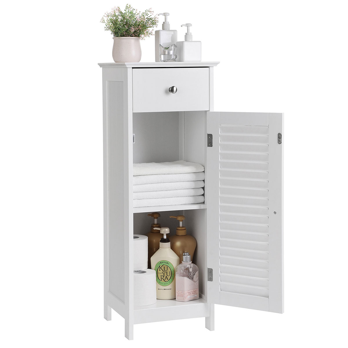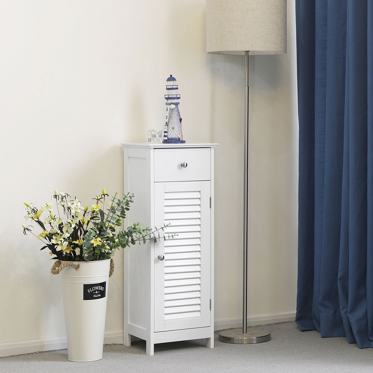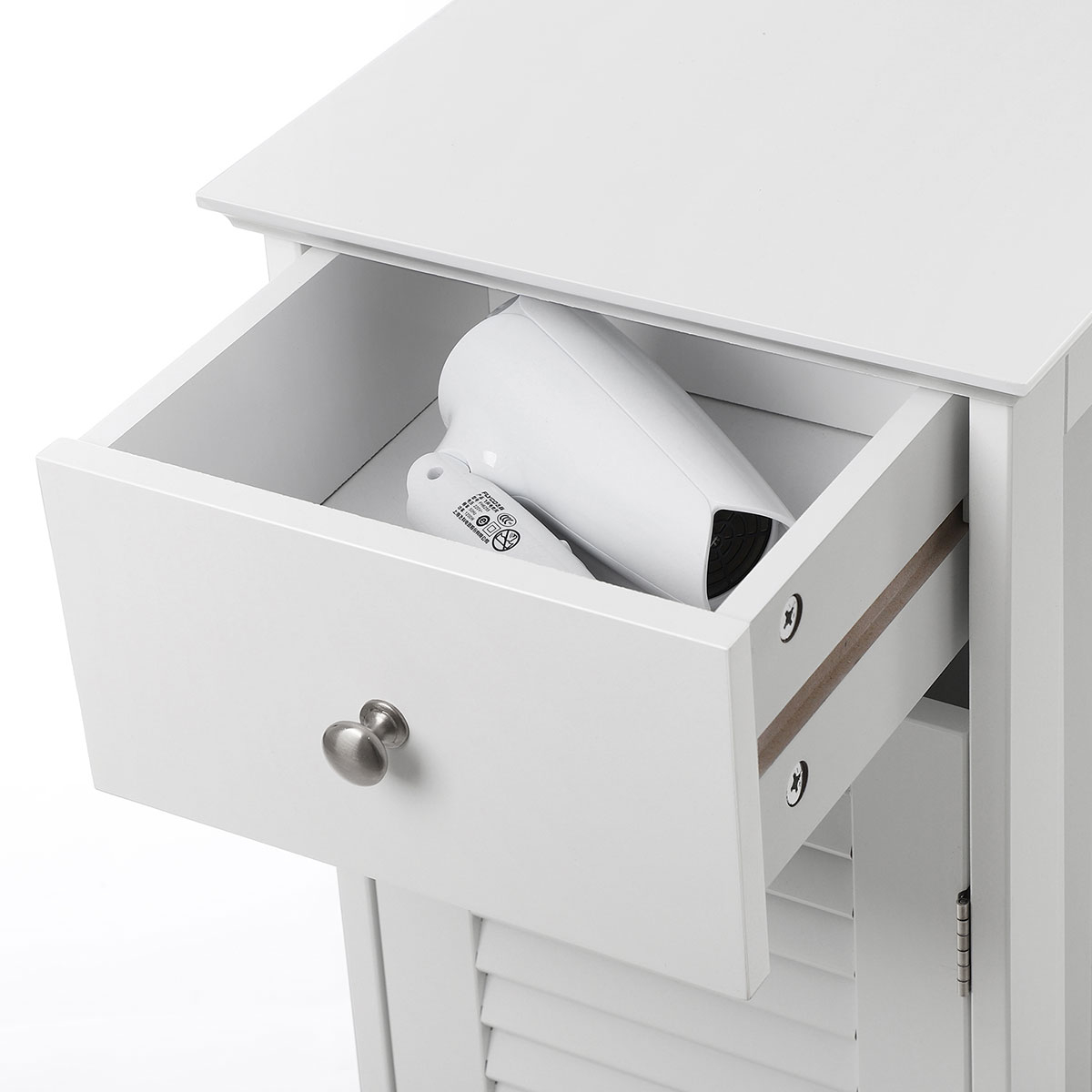Επιδαπέδιο ντουλάπι 3 θέσεων από την εταιρεία Vasagle. Είναι κατασκευασμένο από ξύλο MDF σε λευκό χρώμα και έχει μοντέρνο σχεδιασμό. Διαθέτει 1 συρτάρι και 1 ντουλάπι το οποίο εσωτερικά έχει 1 ράφι για να χωρίζει τον χώρο σε 2 μέρη. Διαθέτει εξαρτήματα τοποθέτησης τοίχου για μέγιστη σταθερότητα. Ιδανικό ντουλάπι για να το τοποθετήσετε στο μπάνιο, στο σαλόνι ή όπου αλλού θέλετε. *Το προϊόν έρχεται αμοντάριστο και συναρμολογείται βάσει οδηγιών.*