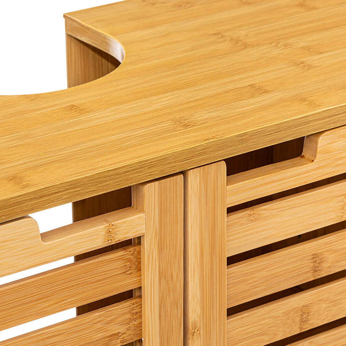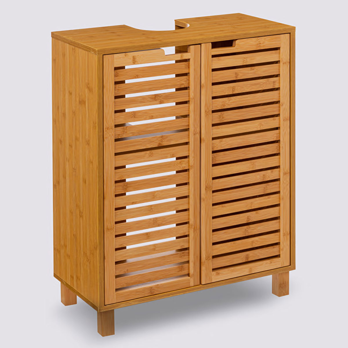 Ντουλάπι μπάνιου για τον χώρο κάτω από τον νιπτήρα σε φυσικό χρώμα του ξύλου. Είναι κατασκευασμένο από bamboo υλικό και διαθέτει κενό στο πάνω μέρος για να μπορεί να τοποθετηθεί ο νιπτήρας. Επίσης διαθέτει κενό στο πάνω μέρος του ντουλαπιού που δημιουργεί " πόμολο" ώστε να μπορεί να ανοιχτεί. * Το προϊόν έρχεται αμοντάριστο.*
