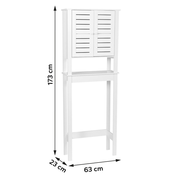 Επιδαπέδιο ντουλάπι μπάνιου με ντουλάπι και ράφι, κατασκευασμένο από ξύλο MDF σε λευκό χρώμα. Το ντουλάπι εσωτερικά διαθέτει 1 ράφι για να χωρίζει τον χώρο σε 2 μέρη και λαβές ώστε να μπορεί να ανοιχτεί. Είναι ιδανικό για τοποθέτηση πάνω από την λεκάνη της τουαλέτας ή και πάνω από το πλυντήριο εφόσον χωράει. Συνδυάστε το με τα υπόλοιπα προϊόντα στο ίδιο σετ για ένα ολοκληρωμένο αποτέλεσμα. *Το προϊόν έρχεται αμοντάριστο και συναρμολογείται βάσει οδηγιών.*
