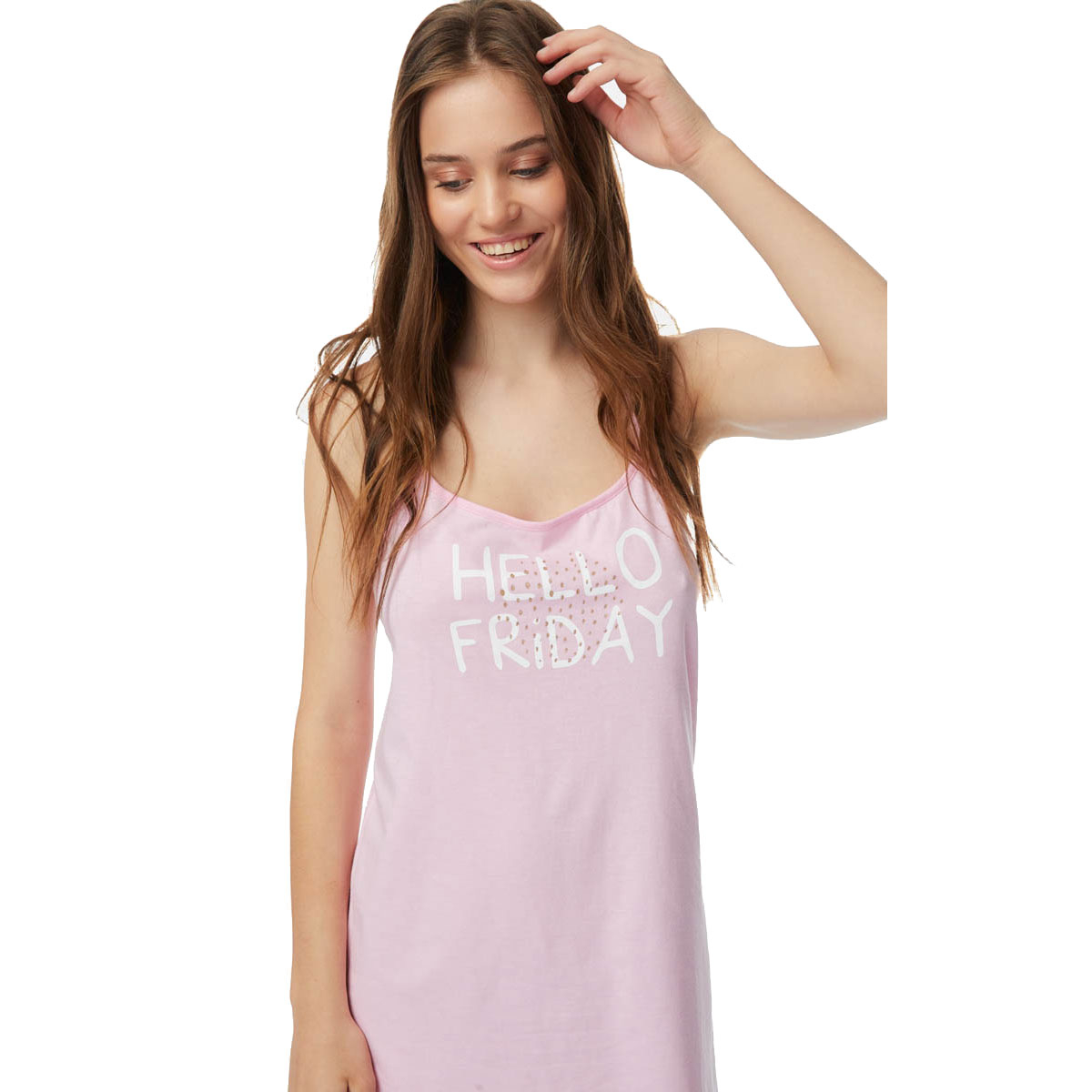 Γυναικείο νυχτικό από την εταιρεία Minerva σε ροζ χρώμα με μοντέρνο τύπωμα στο στήθος. Είναι αμάνικο με τιραντάκι και αθλητική πλάτη. Το ύφασμα είναι κατασκευασμένο από 100% βαμβάκι, που προσδίδει ιδιαίτερη απαλότητα, αντοχή και σωστή εφαρμογή. Είναι ιδιαίτερα ανθεκτικό και διατηρεί τη φόρμα του. Τα χρώματα έχουν δημιουργηθεί με την μέθοδο της νηματοβαφής (μέσα στην ύφανση), με αποτέλεσμα να παραμένουν αναλλοίωτα στην χρήση και τις πλύσεις. Τα προϊόντα Minerva διαθέτουν τα διεθνή πιστοποιητικά ποιότητας και ασφάλειας ISO 9001:2000 , ISO 9002, Oeko-Tex Standard 100, Eco Textile Label. Σε όλα τα στάδια παραγωγής έχουν χρησιμοποιηθεί υποαλλεργικά υλικά χωρίς επιβλαβείς ουσίες προς την υγεία. Αποτελούν προϊόντα ελληνικής ραφής με την εγγύηση ποιότητας και αξιοπιστίας της εταιρείας Minerva.