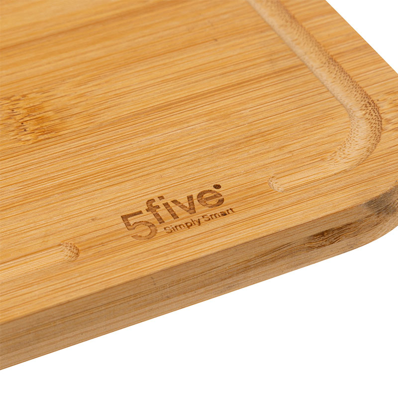 Ξύλα κοπής σετ κατασκευασμένα από ξύλο bamboo σε μπεζ χρώμα. Το μεγάλο μέγεθος είναι για να κόβετε στην επιφάνειά του κρέας και ψάρι ενώ το μικρό για λαχανικά και φρούτα. Διαθέτει επίσης κανάλι περισυλλογής των χυμών ώστε να μην λερώνετε τον πάγκο σας. Ιδανικό εργαλείο για να τεμαχίζετε τις τροφές χωρίς να αφήνετε χαρακιές στη κουζίνα σας. Σε αντίθεση με το παραδοσιακό ξύλο, το μπαμπού είναι πιο ανθεκτικό στα σημάδια των μαχαιριών και στο νερό. Για να διατηρήσετε την ποιότητα της σανίδας σας, καλό είναι να την αλείψετε με λίγο φυτικό λάδι.