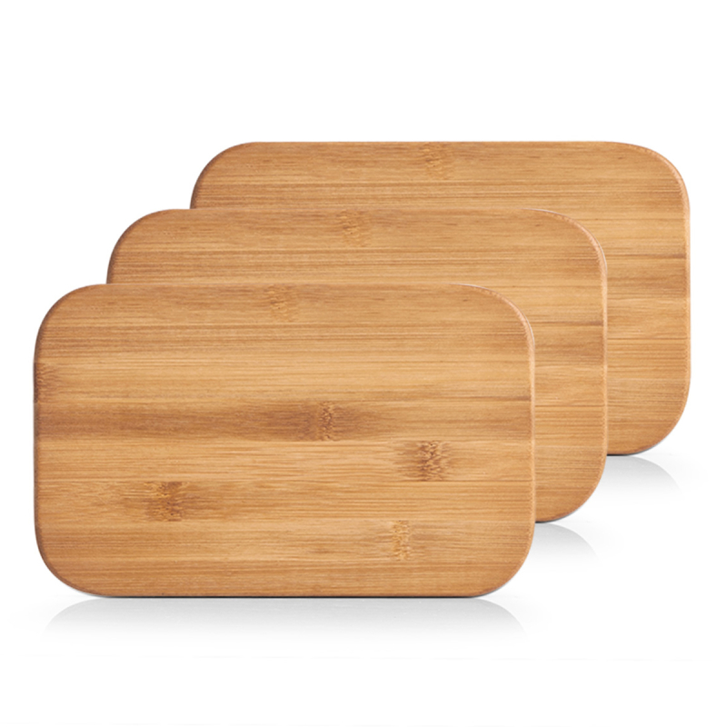 Ξύλα κοπής σε σετ 3 τεμάχια για χρήση στην κουζίνα. Είναι κατασκευασμένα από ξύλο bamboo σε φυσική απόχρωση. Το bamboo είναι ένα ιδιαίτερα ελαφρύ, ανθεκτικό υλικό με αντιβακτηριδιακή δράση και φιλικό προς το περιβάλλον. Σε αντίθεση με το παραδοσιακό ξύλο, το μπαμπού είναι πιο ανθεκτικό στα σημάδια των μαχαιριών και στην υγρασία. Είναι κατάλληλα για φρούτα, λαχανικά, ψάρια και κρέας. Για να διατηρήσετε την ποιότητα της σανίδας σας, καλό είναι να την αλείψετε με λίγο φυτικό λάδι.