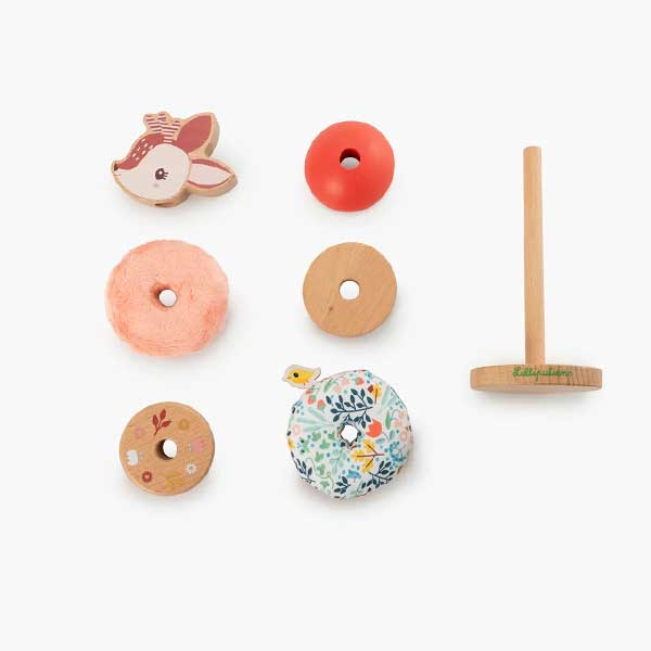 Πυραμίδα με κρίκους σε διάφορα χρώματα και σχέδιο αλεπού από την εταιρεία Lilliputiens. Είναι κατασκευασμένη από ξύλο οξιάς πιστοποιημένο με FSC. Τα υφασμάτινα κομμάτια είναι από 100% πολυεστέρα. Έχει 6 κομμάτια και 1 στύλο στοίβαξης. Βοηθάει στην ανάπτυξη της λεπτής κινητικότητας και της φαντασίας. Τα διαφορετικά υλικά και χρώματα διεγείρουν τις αισθήσεις του. Κατάλληλο από 12+ μηνών.