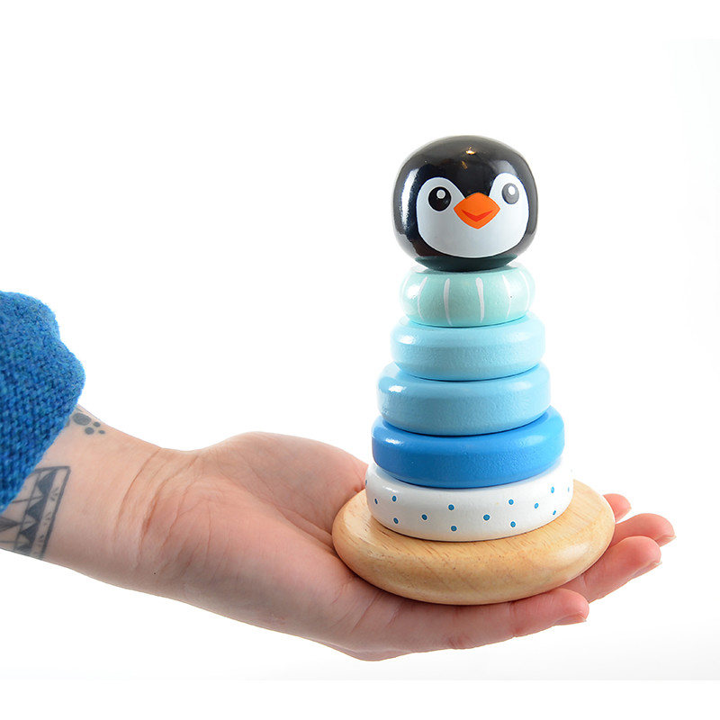 Ξύλινη πυραμίδα στοίβαξης σε μπλε αποχρώσεις και σχέδιο πιγκουΐνο από την εταιρία Magni. Κατασκευασμένη από υλικά υψηλής ποιότητας και χωρίς καμία βλαβερή ουσία ή τοξικά χρώματα. Διδάσκει στο παιδί τα χρώματα, τα μεγέθη και τα σχήματα ενώ παράλληλα συμβάλλει στην ανάπτυξη της λεπτής κινητικότητας και στον συντονισμό ματιού-χεριού. Kατάλληλο για ηλικίες 12+ μηνών.