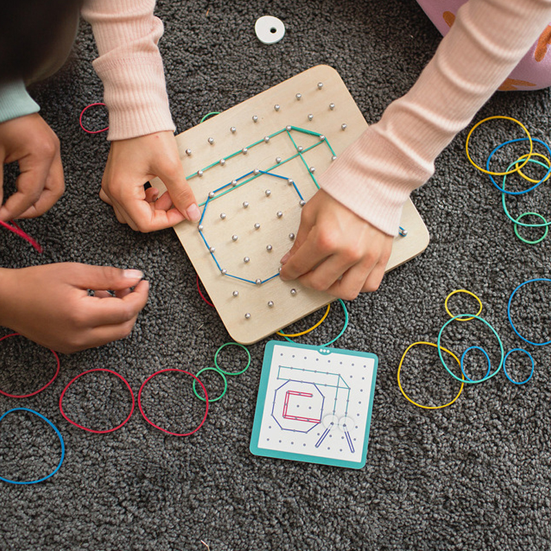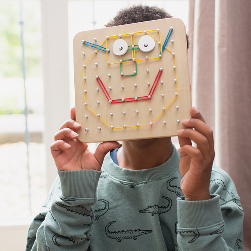 Ξύλινο εκπαιδευτικό παιχνίδι από την εταιρία Bs Toys. Κατασκευασμένο από ξύλο FSC και χαρτόνι, είναι κατάλληλο για ηλικίες 4+ ετών. Είναι ιδανικό για να δημιουργήσουν τα παιδιά πάνω στον πίνακα διάφορα σχέδια και σχήματα με την βοήθεια των λάστιχων. Μπορούν να συμβουλευτούν και τις κάρτες που απεικονίζουν διάφορα σχέδια. Ιδανικό παιχνίδι που ακονίζει την φαντασία και την δημιουργικότητα των παιδιών.