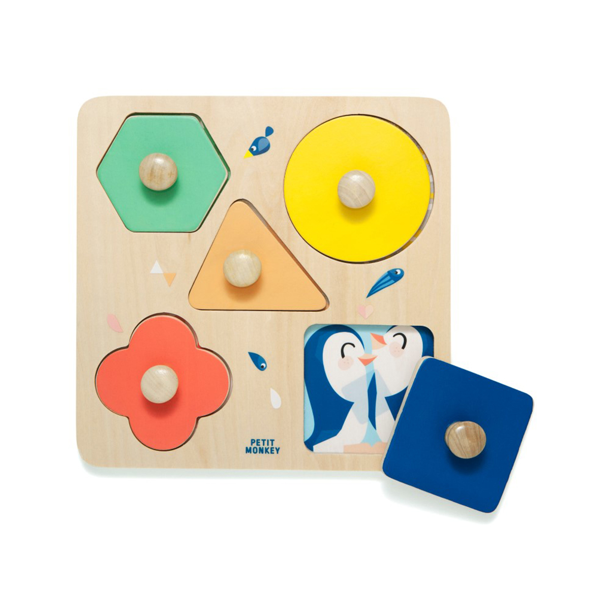 Ξύλινο πάζλ πολύχρωμο και σχέδιο ζωάκια από την εταιρεία Petit Monkey. Καλλιεργεί την φαντασία του παιδιού και αναπτύσσει την παρατηρητικότητα και τις κινητικές του δεξιότητες. Έχει 5 διαφορετικά σφηνώματα που έχουν το ιδανικό μέγεθος για τα μικρά του χεράκια και του μαθαίνουν τα ζωάκια της φάρμας. Κατάλληλο για ηλικίες 12+ μηνών.