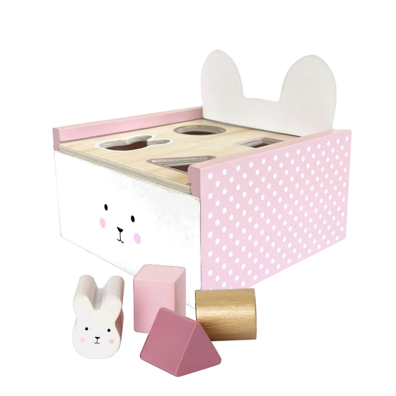 Ξύλινο κουτί με σχήματα της σουηδικής εταιρείας Jabadabado σε μπεζ-ροζ χρώμα με πολύχρωμες λεπτομέρειες. Τοποθετήστε με το μωρό σας τα σχήματα μέσα στο κουτί, ανοίξτε το αφαιρούμενο κάλυμμα και παίξτε ξανά. Διδάσκει τα χρώματα και τα σχήματα ενώ ταυτόχρονα εξασκεί την λεπτή κινητικότητα και τον συντονισμό χεριού-ματιού. Κατάλληλο για ηλικίες 18+ μηνών.