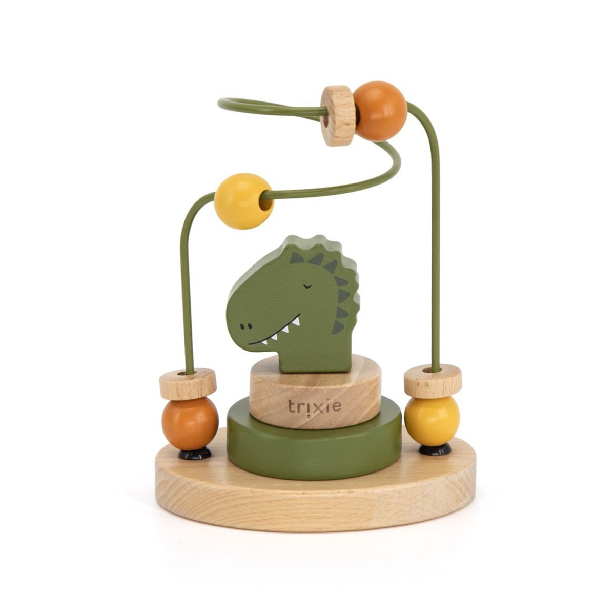 Παιχνίδι προγραφής της εταιρείας Trixie σε μπεζ-πράσινο χρώμα και σχέδιο δεινοσαυράκι. Είναι κατασκευασμένο από 100% πιστοποιημένο FSC ξύλο οξιάς, βαμμένο με βερνίκι νερού, ασφαλές και μη τοξικό. Διαθέτει χάντρες σε διάφορα χρώματα και σχήματα οι οποίες γλιστρούν κατά μήκος του σύρματος. Ακόμα, έχει παιχνίδι στοίβαξης το οποίο σχηματίζει το αγαπημένο του ζωάκι. Κατάλληλο για ηλικίες 12+ μηνών.