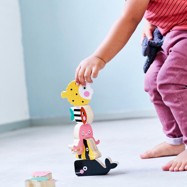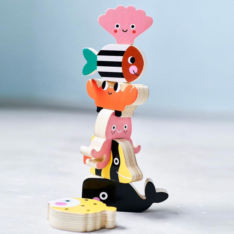Ξύλινο Παιχνίδι Στοίβαξης (Σετ 7τμχ) Petit Monkey Ocean PTM-PMWT004