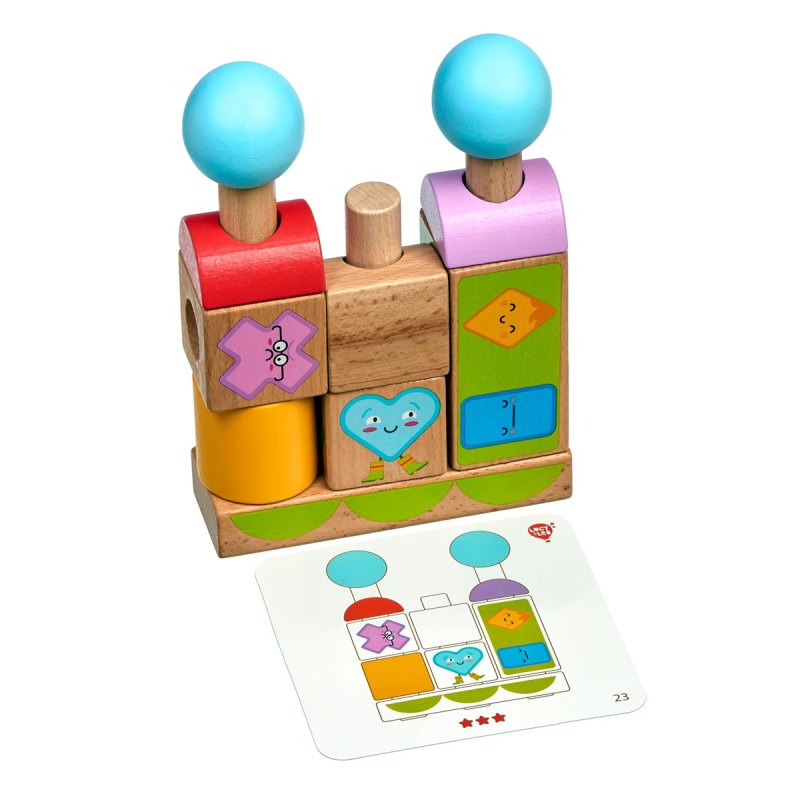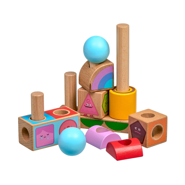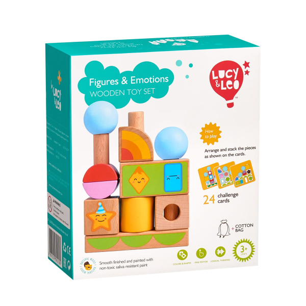Ξύλινο παιχνίδι στοίβαξης σε πολύχρωμες αποχρώσεις και σχέδιο συνασθήματα από την εταιρία Lucy & Leo. Kατασκευασμένο από υψηλής ποιότητας ξύλο, φινιρισμένο και βαμμένο με φωτεινά και ασφαλή, για τα παιδιά, χρώματα. Το παιχνίδι έχει διαφορετικά κομμάτια και όλα έχουν διαφορετικά χρώματα και διαθέσεις. Τα κομμάτια στοιβάζονται πάνω στις ράβδους σύμφωνα με τις παρεχόμενες υποδείξεις. Οι 24 κάρτες βοηθούν τα παιδιά να απολαύσουν ένα διασκεδαστικό, ενεργό παιχνίδι και να αναπτύξουν επιδεξιότητα, λογική σκέψη και να μάθουν νέα χρώματα, σχήματα και συναισθήματα. Κατάλληλο για ηλικίες 3+ ετών.