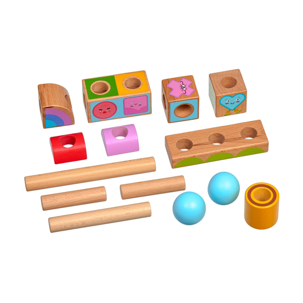 • Τεμάχια: 4 Ξύλινοι Κύβοι, 1 Ξύλινη Βάση, 9 Ξύλινα Παιχνίδια, 24 Κάρτες Για Ηλικίες 3+ Ετών