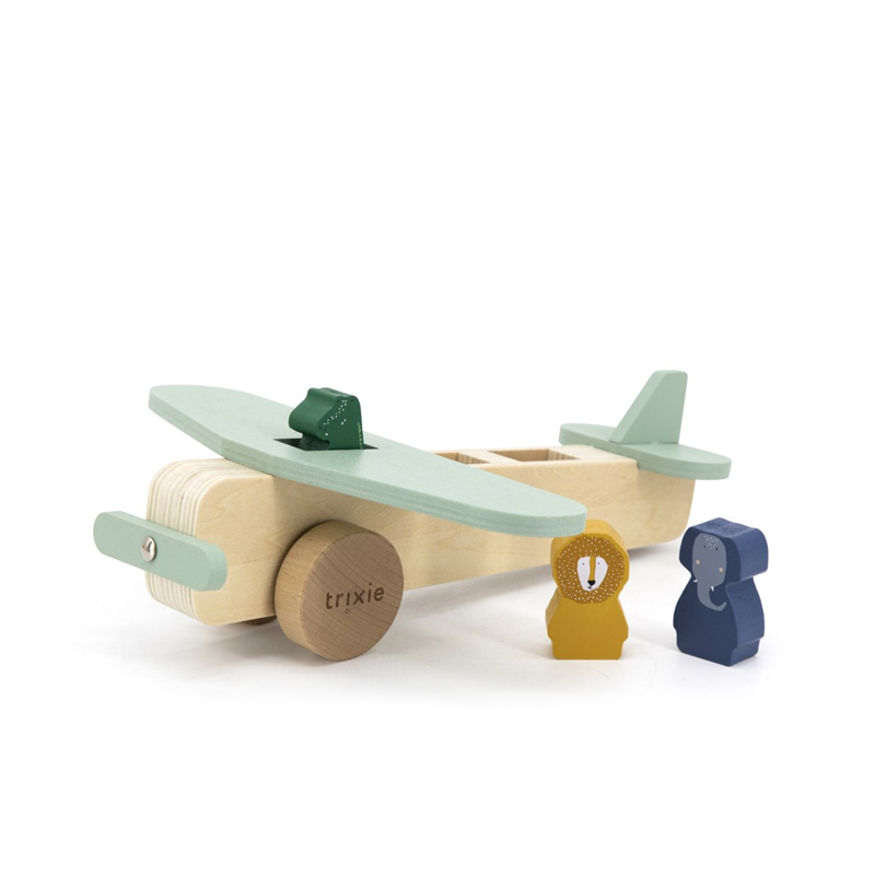 Ξύλινο παιχνίδι αεροπλάνο και ζωάκια σε πολύχρωμες αποχρώσεις από την εταιρία Trixie. Κατασκευασμένα από 100% πιστοποιημένο ξύλο MDF και ξύλο οξιάς με την πιστοποίηση FSC©και βαμμένα με χρώματα που έχουν ως βάση το νερό, ασφαλή και μη τοξικά για παιδιά. Το μικρό σας θα τοποθετήσει τα ζωάκια μέσα στο αεροπλάνο έτοιμα για απογείωση, παίζοντας αμέτρητες ώρες. Κατάλληλο για ηλικίες 18+ μηνών.