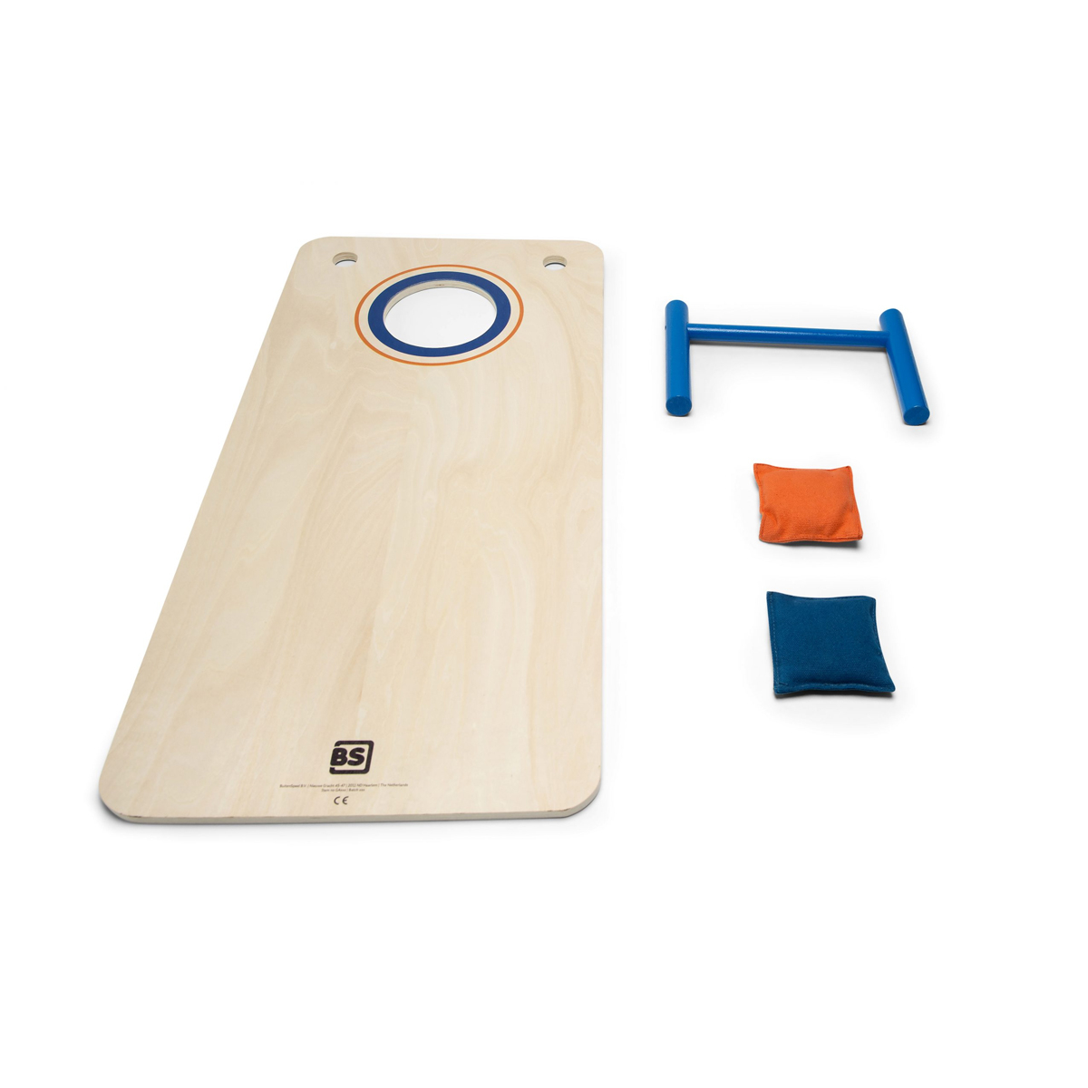 Ξύλινο παιχνίδι ευστοχίας από την εταιρία Bs Toys. Κατασκευασμένο από ξύλο FSC, είναι κατάλληλο για ηλικίες 8+ ετών. Τοποθετήστε τις σανίδες τη μία απέναντι από την άλλη. Φτιάξτε τις ομάδες και ξεκινήστε να ρίχνετε εναλλάξ. Βαθμολογήστε με 1 βαθμό τα σακιά που ρίχνετε πάνω στον πίνακα και με 3 βαθμούς τα σακιά που μπαίνουν μέσα στο στόχο. Η πρώτη ομάδα που θα φτάσει τους 21 πόντους κερδίζει το παιχνίδι. Τα σακιά είναι υφασμάτινα εξωτερικά από βαμβακερό ύφασμα και εσωτερικά γεμισμένα με άμμο. Ιδανικό παιχνίδι για αμέτρητες ώρες διασκέδασης.
