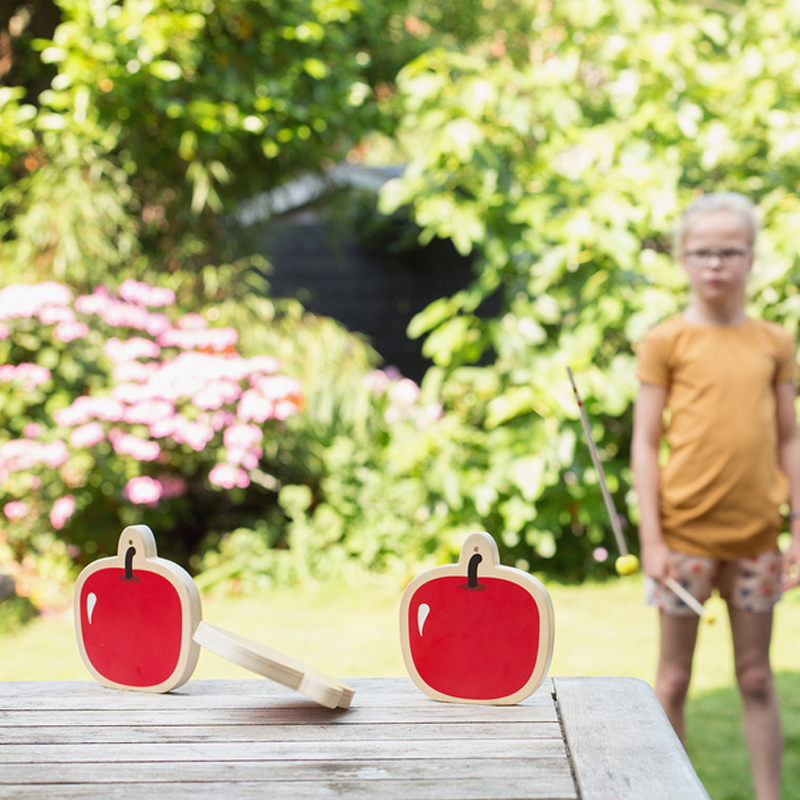 Ξύλινο παιχνίδι από την εταιρία Bs Toys. Κατασκευασμένο από ξύλο κόντρα πλακέ, είναι κατάλληλο για ηλικίες 6+ ετών. Τοποθετήστε τα μήλα σε μία επιφάνεια, περάστε το βέλος στο τόξο και στοχεύστε τα μήλα για να τα ρίξετε. Θα γίνει το αγαπημένο παιχνίδι του μικρού σας!