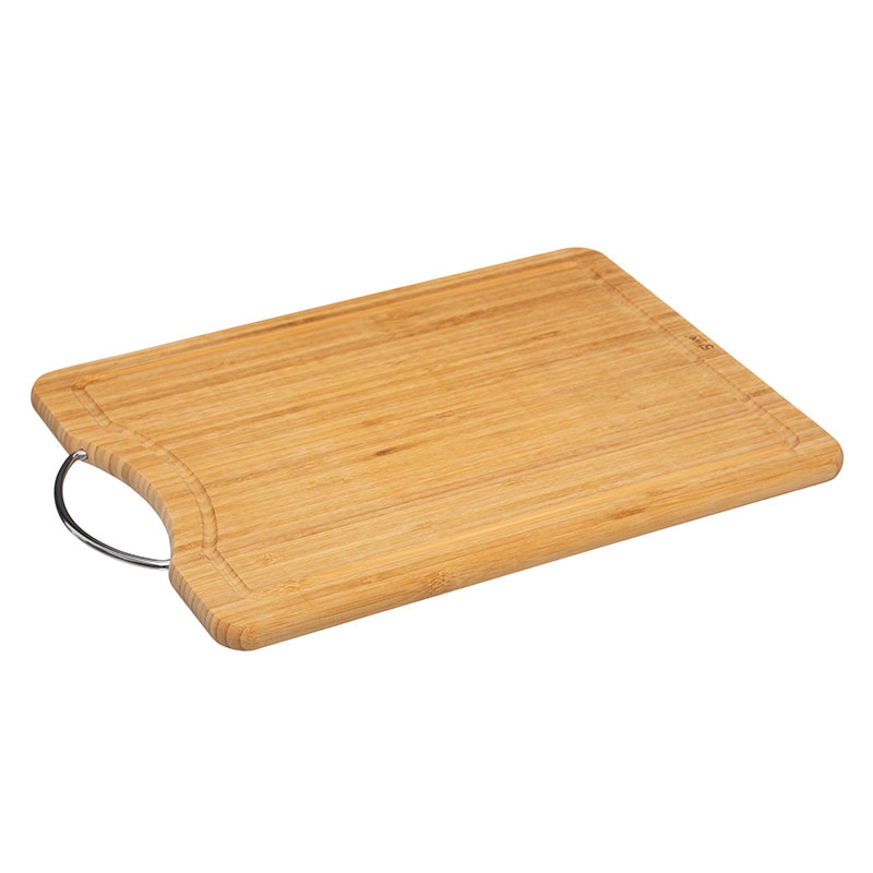 Ξύλο κοπής κατασκευασμένο από ξύλο bamboo σε μπεζ χρώμα. Διαθέτει κανάλι περισυλλογής των χυμών ώστε να μην λερώνετε τον πάγκο σας και λαβή για να μεταφέρεται εύκολα. Ιδανικό εργαλείο για να τεμαχίζετε τις τροφές χωρίς να αφήνετε χαρακιές στη κουζίνα σας. Σε αντίθεση με το παραδοσιακό ξύλο, το μπαμπού είναι πιο ανθεκτικό στα σημάδια των μαχαιριών και στο νερό. Για να διατηρήσετε την ποιότητα της σανίδας σας, καλό είναι να την αλείψετε με λίγο φυτικό λάδι.