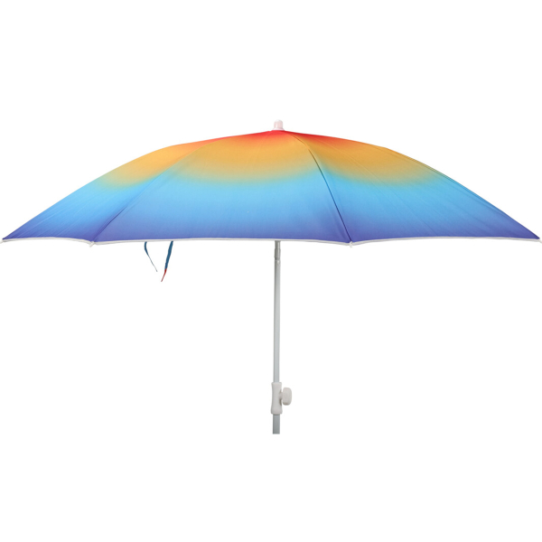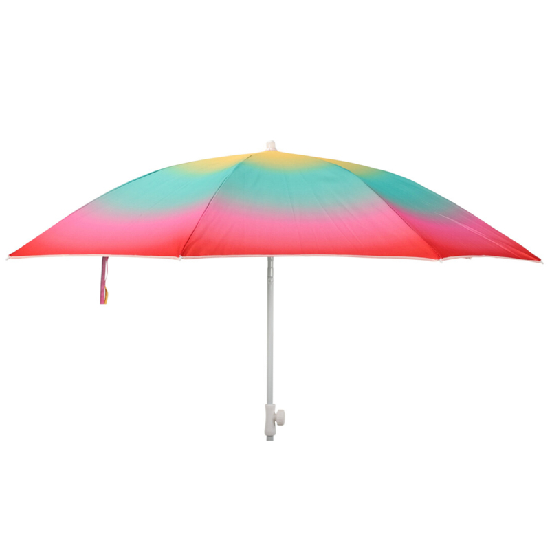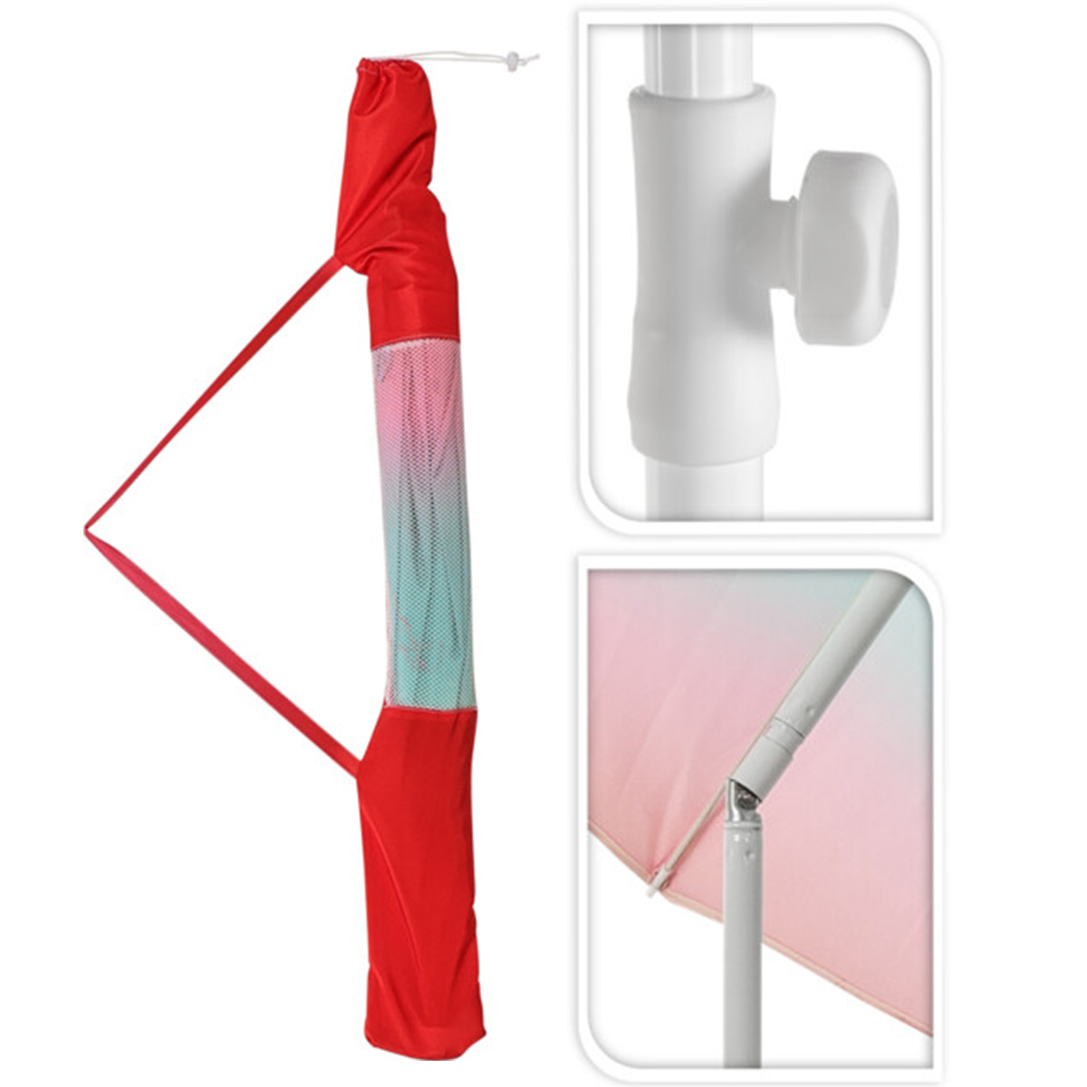 Ομπρέλα θαλάσσης με διάμετρο 1.8 μέτρα σε ροζ, κίτρινο και τυρκουάζ χρώμα. Έχει 8 ακτίνες και άξονα από μεταλλικό υλικό. Το ύφασμά της είναι από 100% polyester και έχει δείκτη προστασίας UPF 50+ που σας κρατάει ασφαλείς από την επιβλαβή ηλιακή ακτινοβολία. Έχει ρυθμιζόμενο ύψος για να προσαρμόζεται στις ανάγκες σας και θήκη μεταφοράς. Μπορεί να πάρει κλίση για καλύτερη προστασία και σκιά. Ιδανική για να χαρείτε το μπάνιο σας στην παραλία. Η ομπρέλα δεν έχει αυτόματο μηχανισμό ανοίγματος. Δεν περιλαμβάνεται βάση.