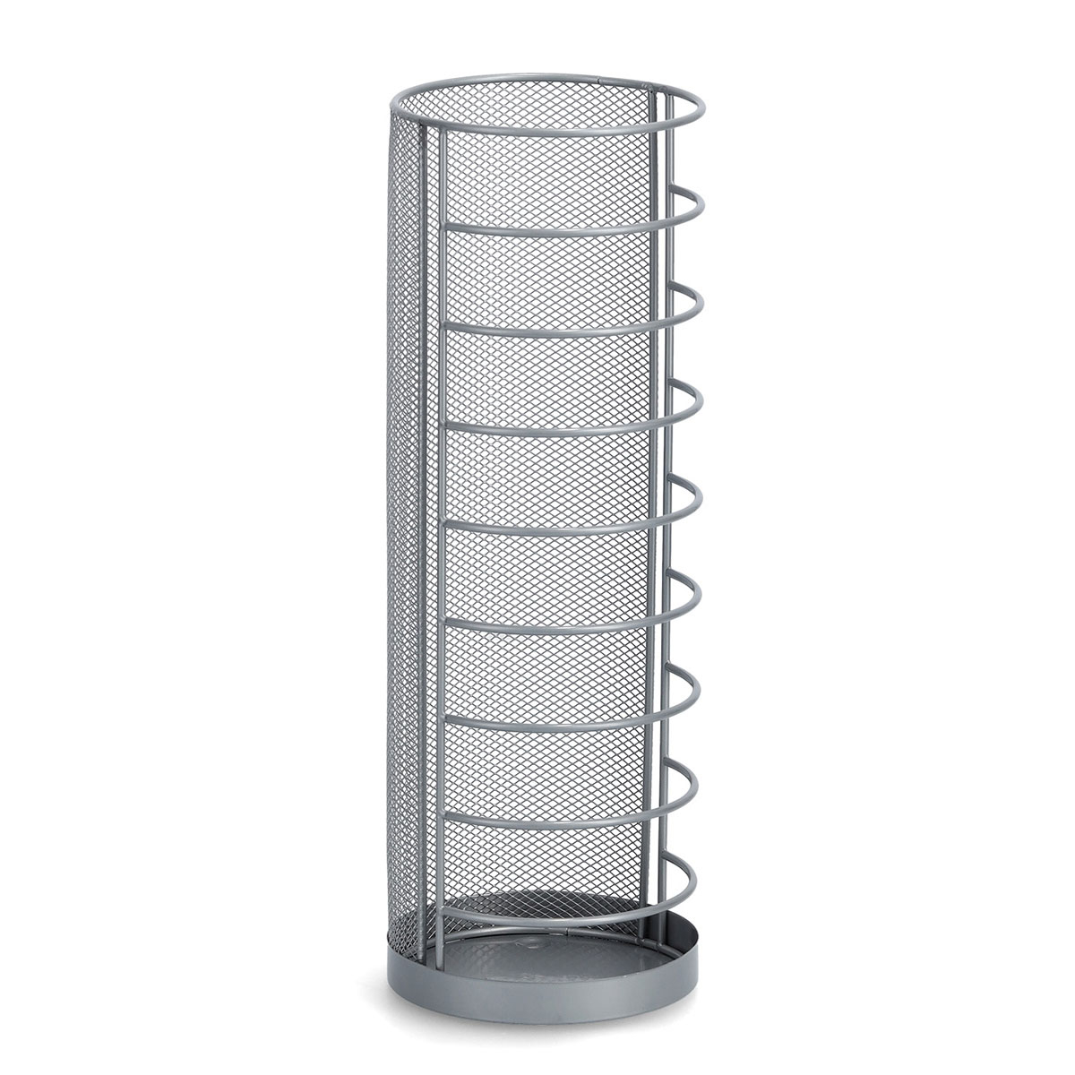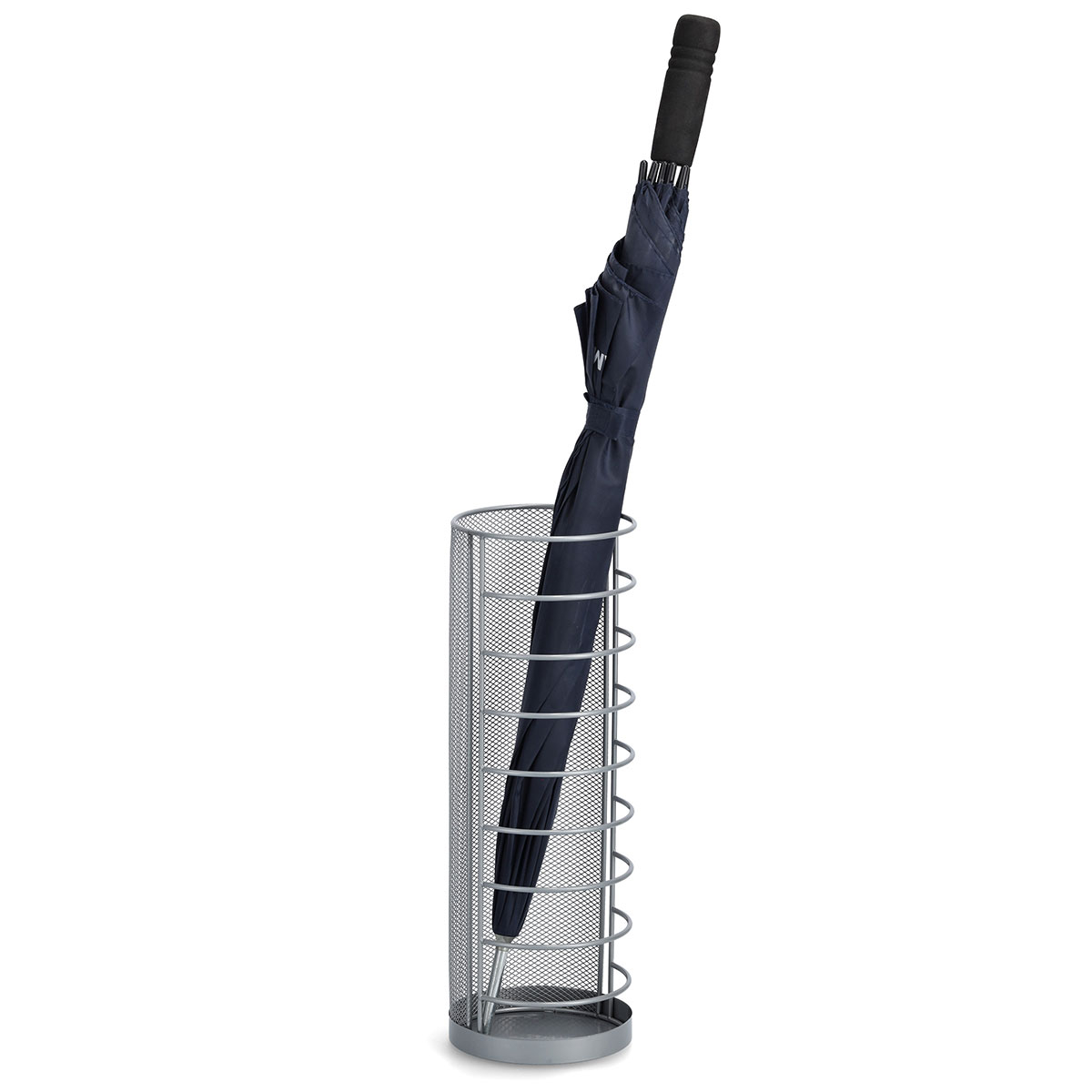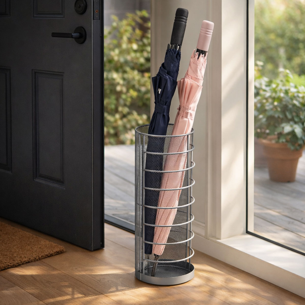 Ομπρελοθήκη με μοντέρνο σχεδιασμό, κατασκευασμένη από ανοξείδωτο ατσάλι σε ασημί χρώμα με πλέγμα. Ιδανική για την αποθήκευση και οργάνωση των ομπρελών στην είσοδο του σπιτιού ή του γραφείου. Ο διάτρητος σχεδιασμός επιτρέπει τον καλύτερο αερισμό και το γρήγορο στέγνωμα των ομπρελών, ενώ η βάση συλλογής νερού βοηθά να διατηρείται ο χώρος καθαρός. Με μοντέρνα και λειτουργική αισθητική, ταιριάζει εύκολα σε κάθε χώρο.